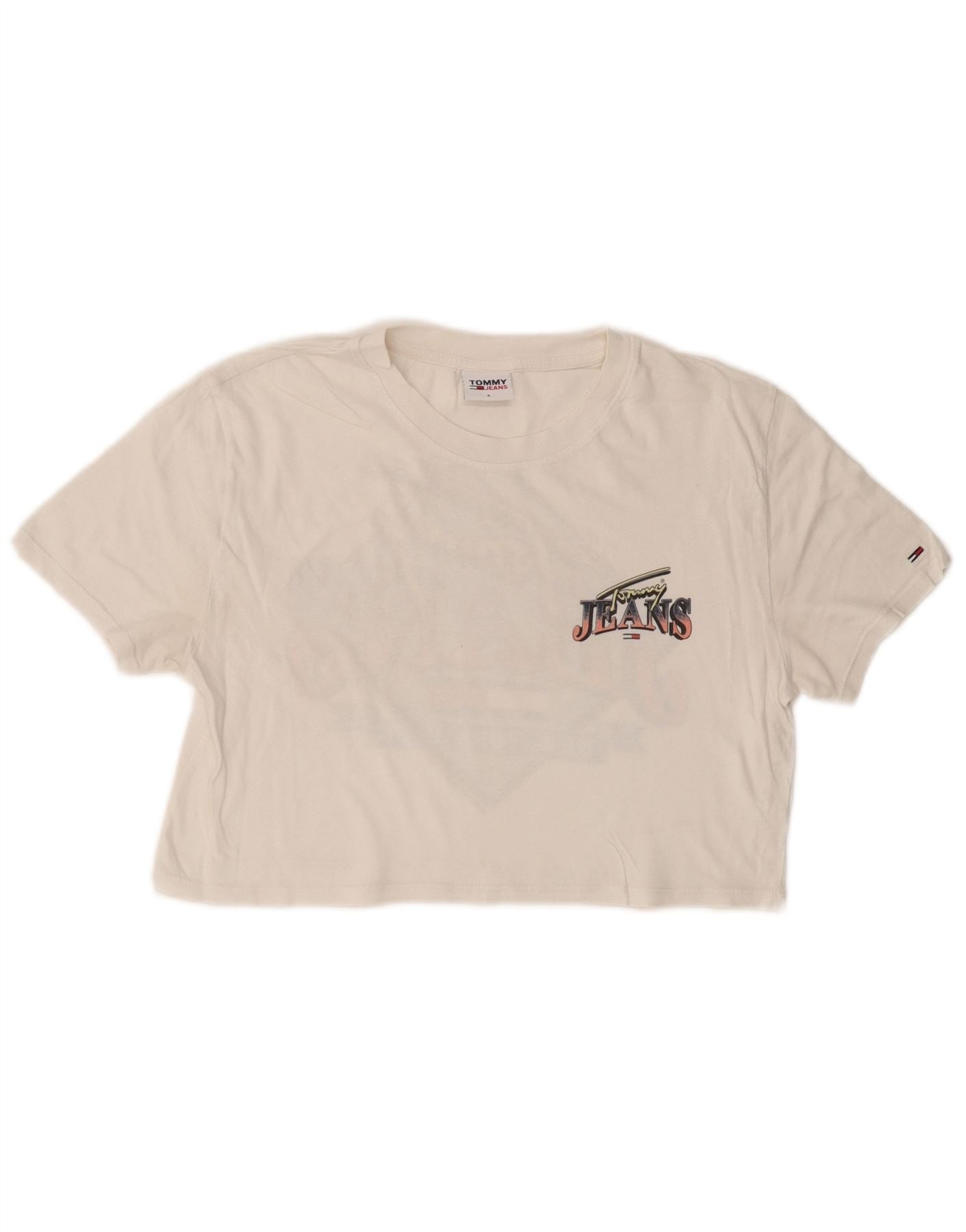 TOMMY HILFIGER Womens Crop Graphic T-Shirt Top UK 10 Small White