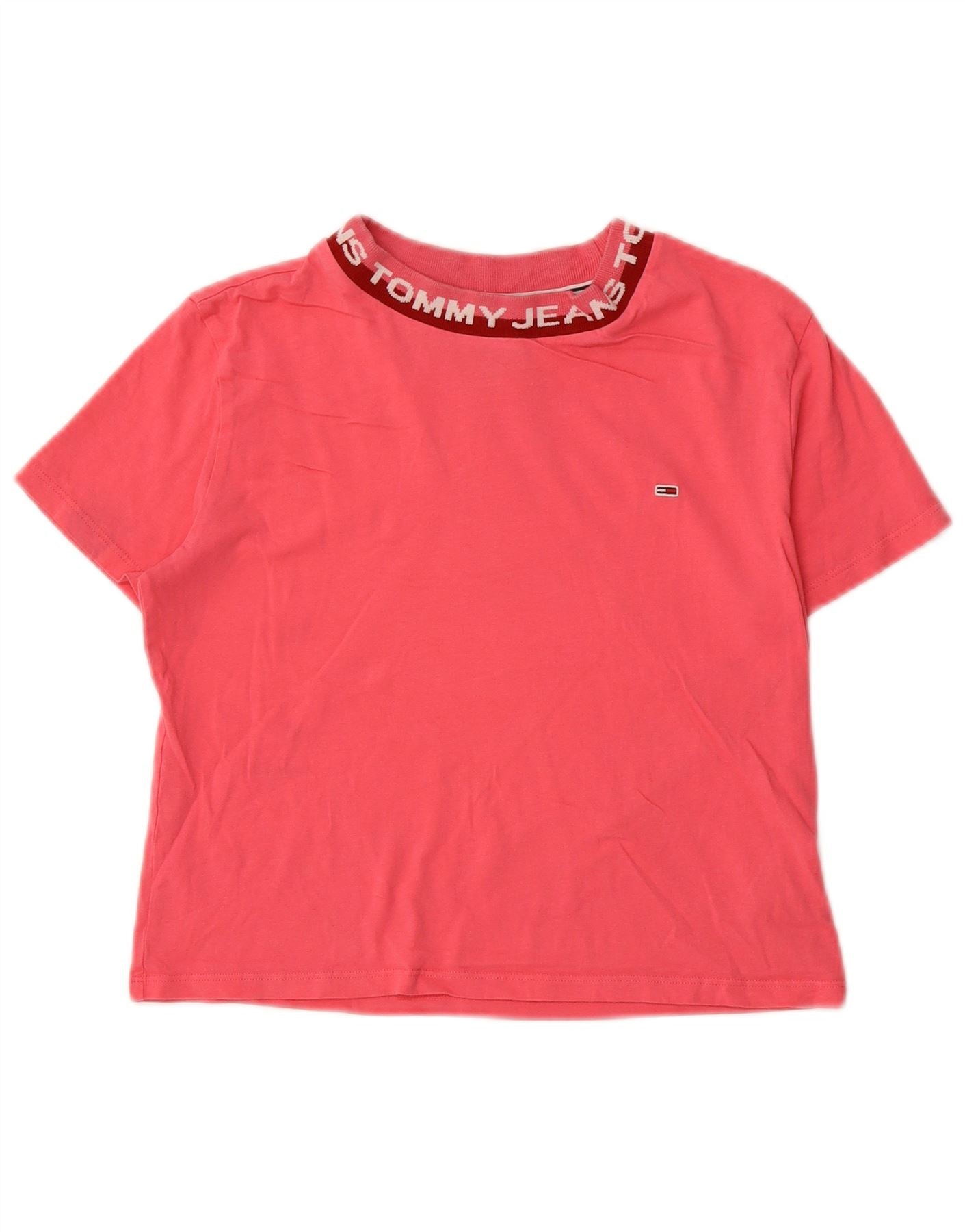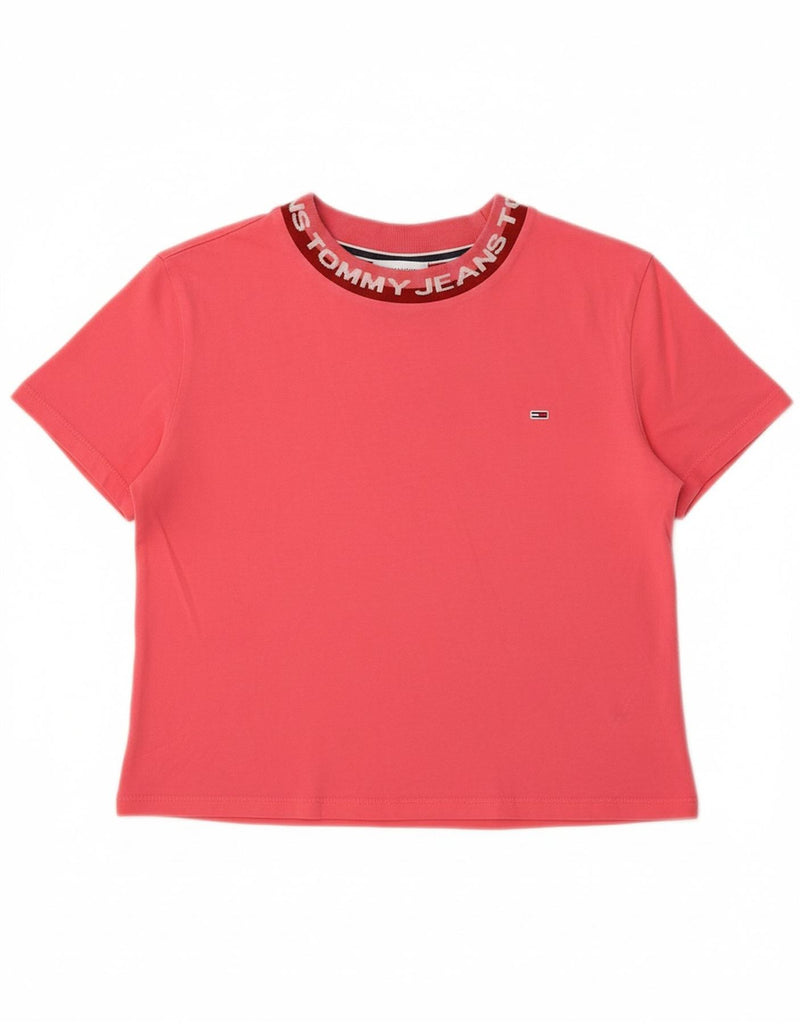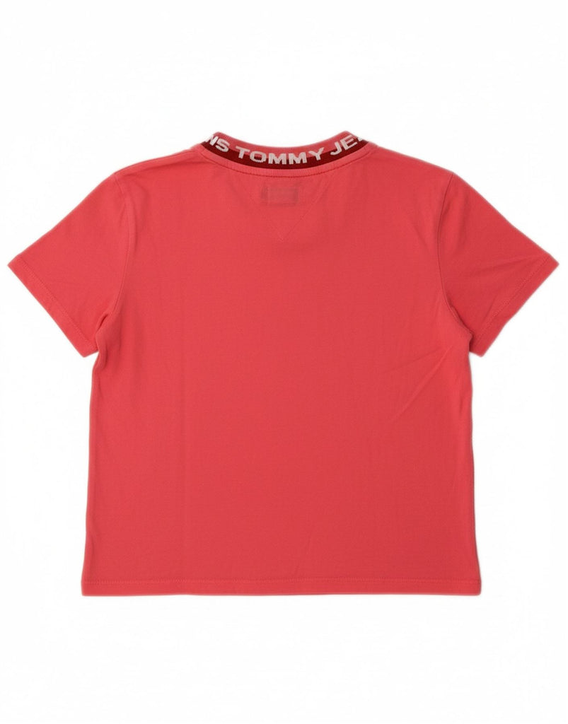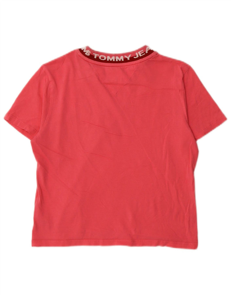 TOMMY HILFIGER Womens Crop Graphic T-Shirt Top UK 12 Medium Pink Cotton