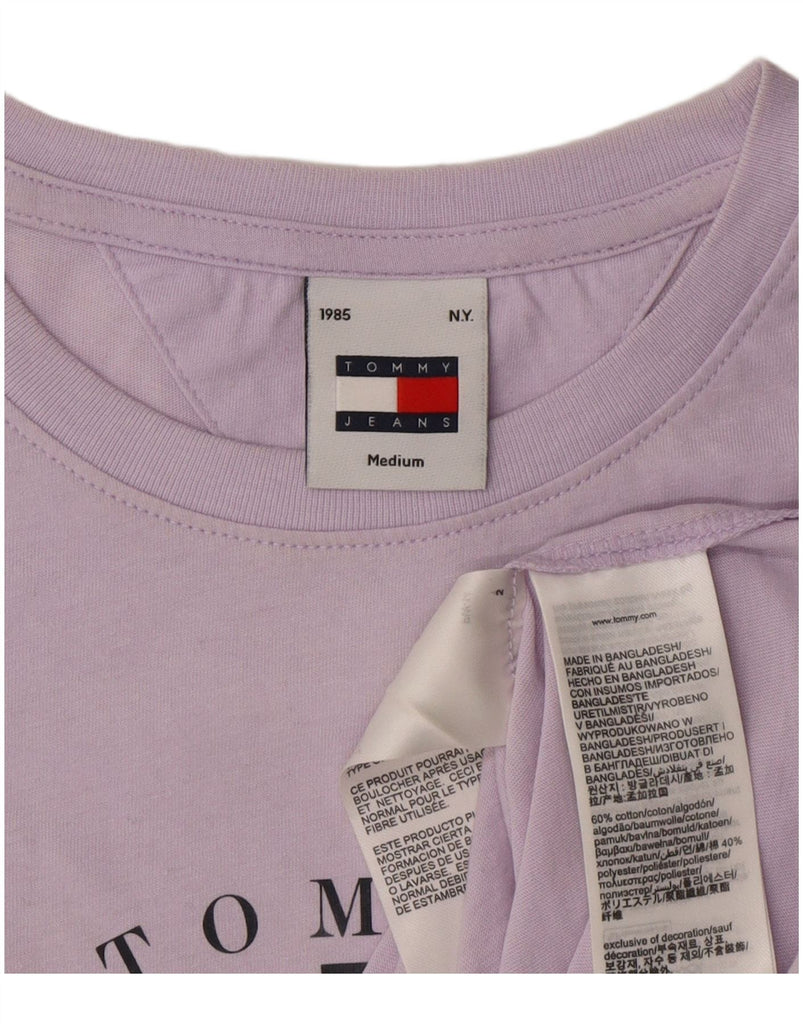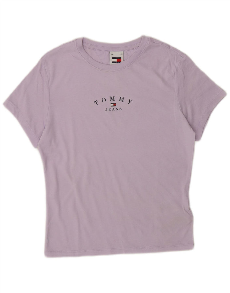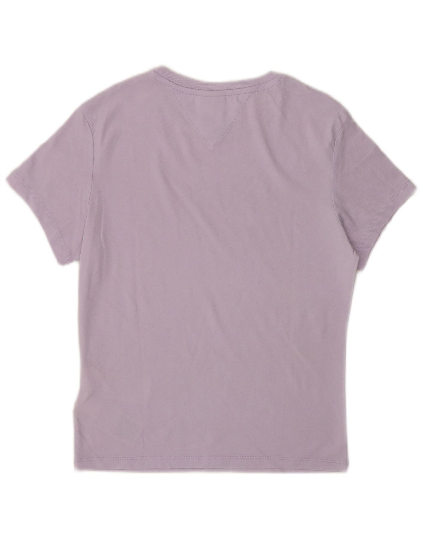 TOMMY HILFIGER Womens Crop Graphic T-Shirt Top UK 14 Medium Purple Cotton