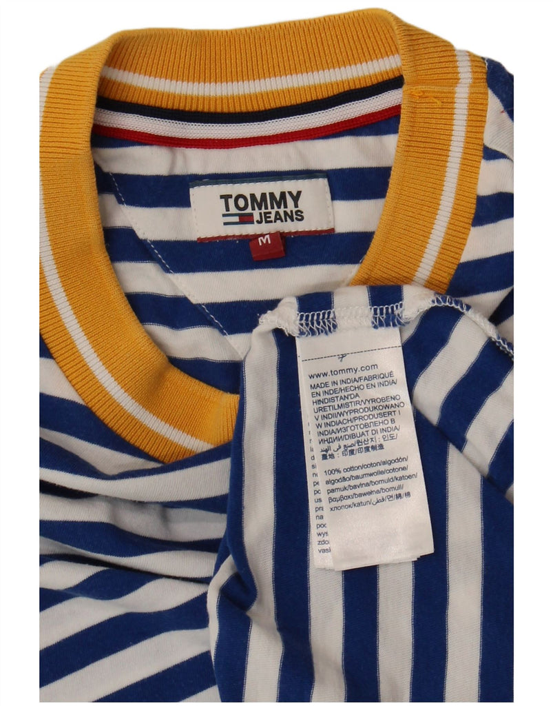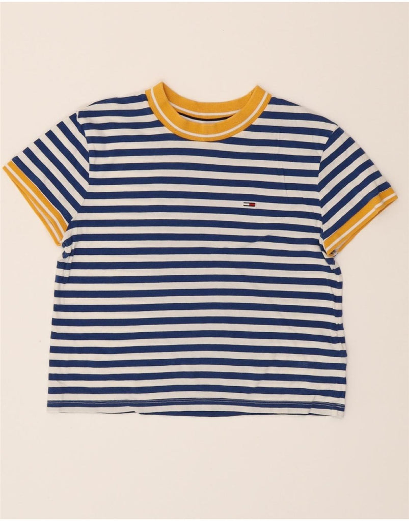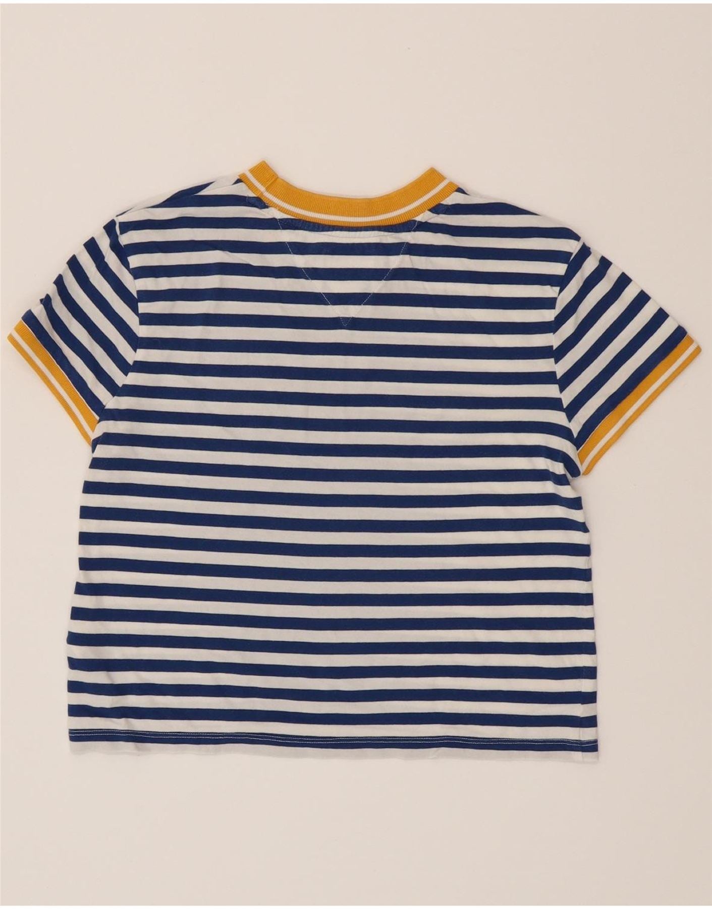 TOMMY HILFIGER Womens Crop T-Shirt Top UK 12 Medium Blue Striped Cotton