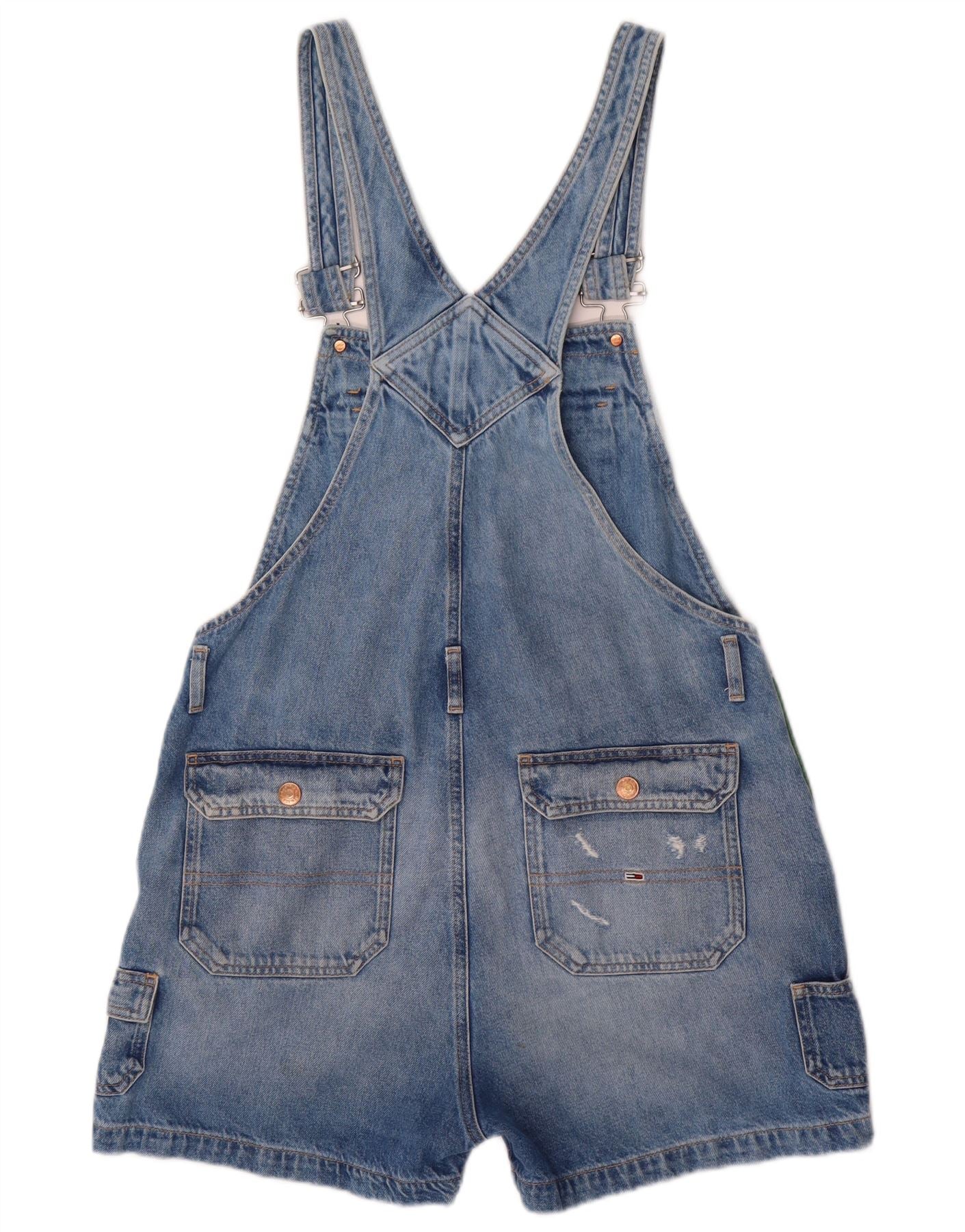 - AI Description: This Tommy Hilfiger womens dungaree playsuit is crafted from durable blue cotton denim. It features a classic design with adjustable buckle straps for a custom fit. The regular fit ensures comfortable wear. Practical pockets add functionality. A subtle brand logo provides a signature touch, embodying a timeless, casual style.