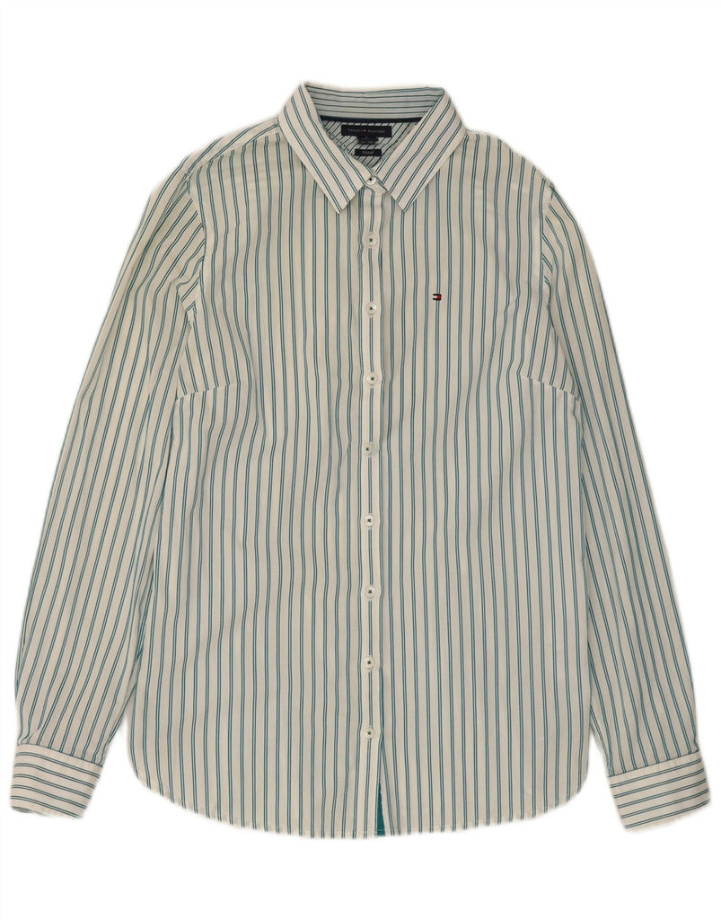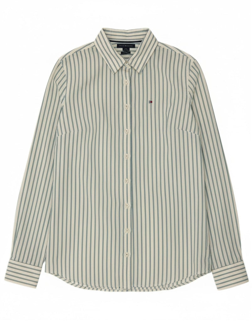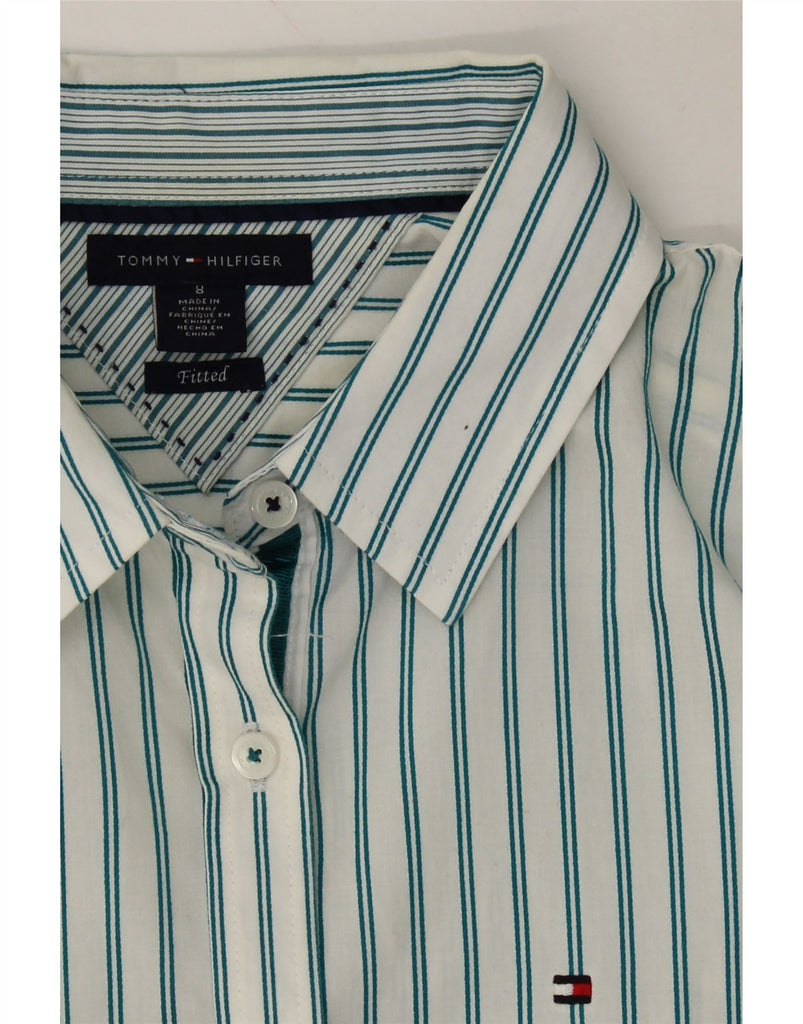 TOMMY HILFIGER Womens Fitted Shirt US 8 Medium White Striped Cotton