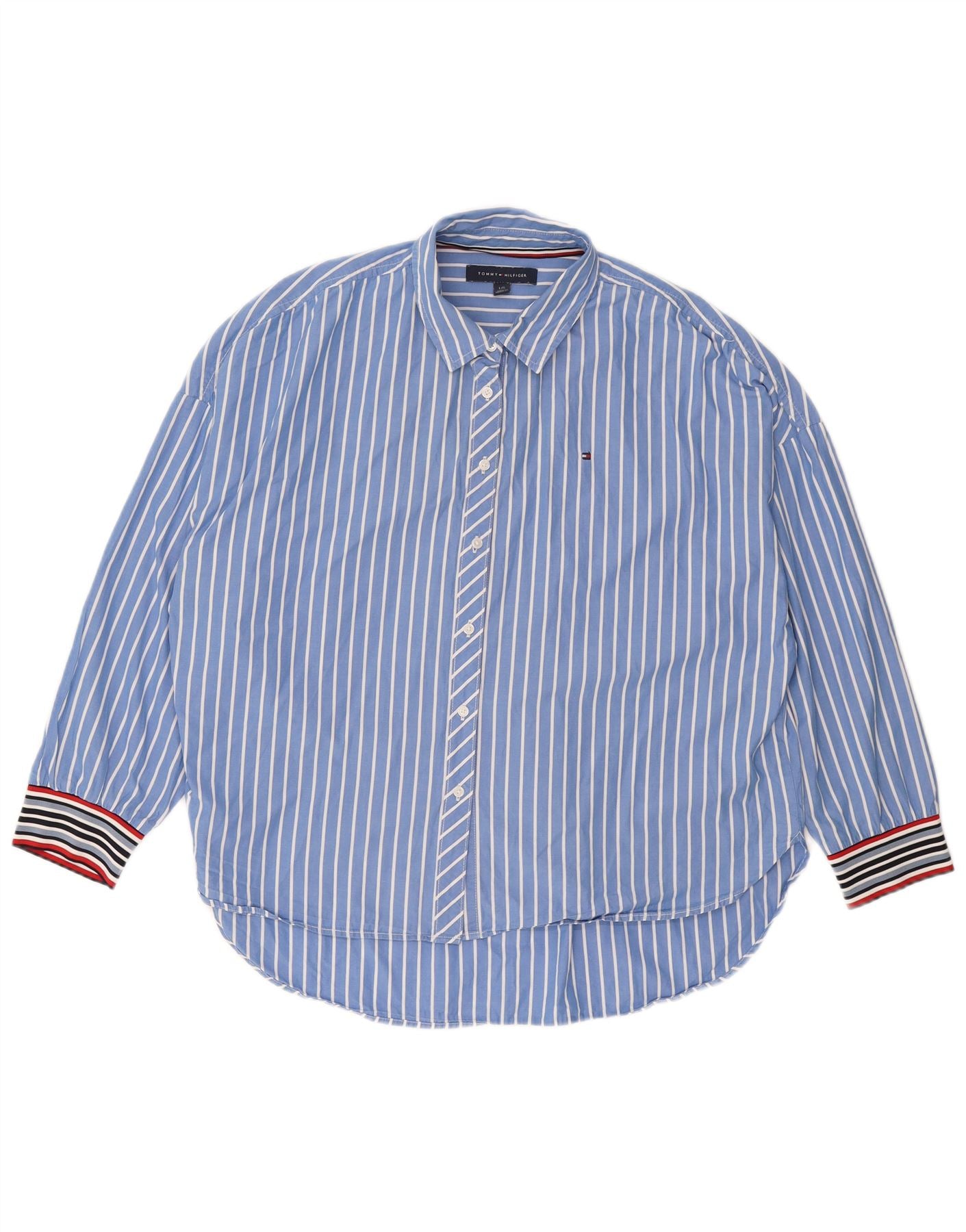 TOMMY HILFIGER Womens Grant Fit Oversized Shirt UK 16 Large Blue Pinstripe