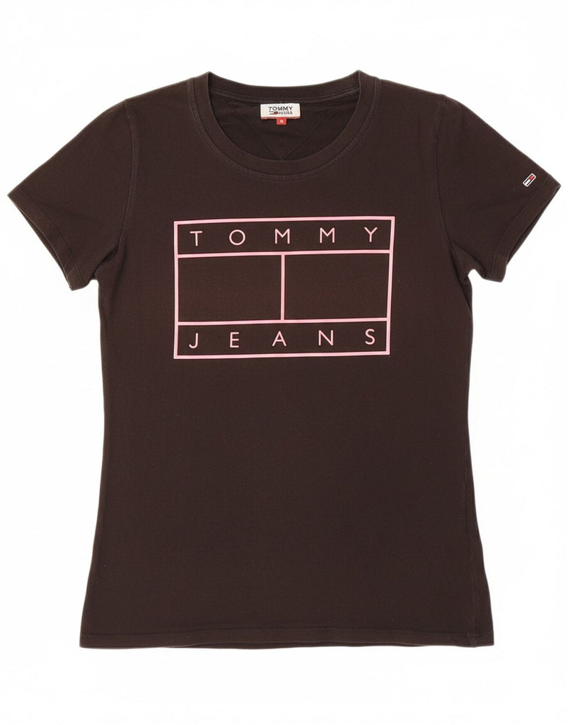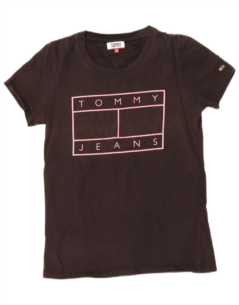 TOMMY HILFIGER Womens Graphic T-Shirt Top UK 10 Small Black Cotton