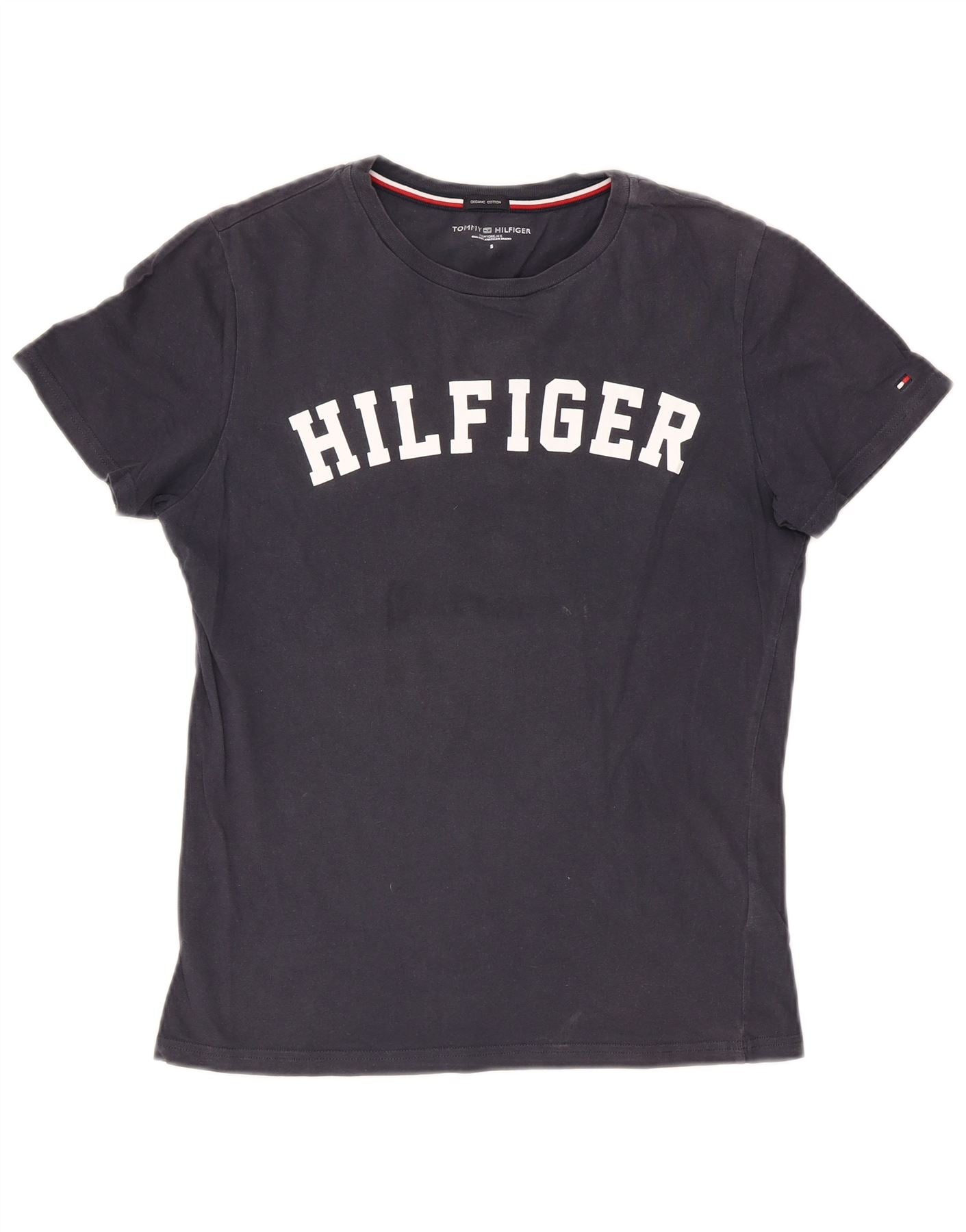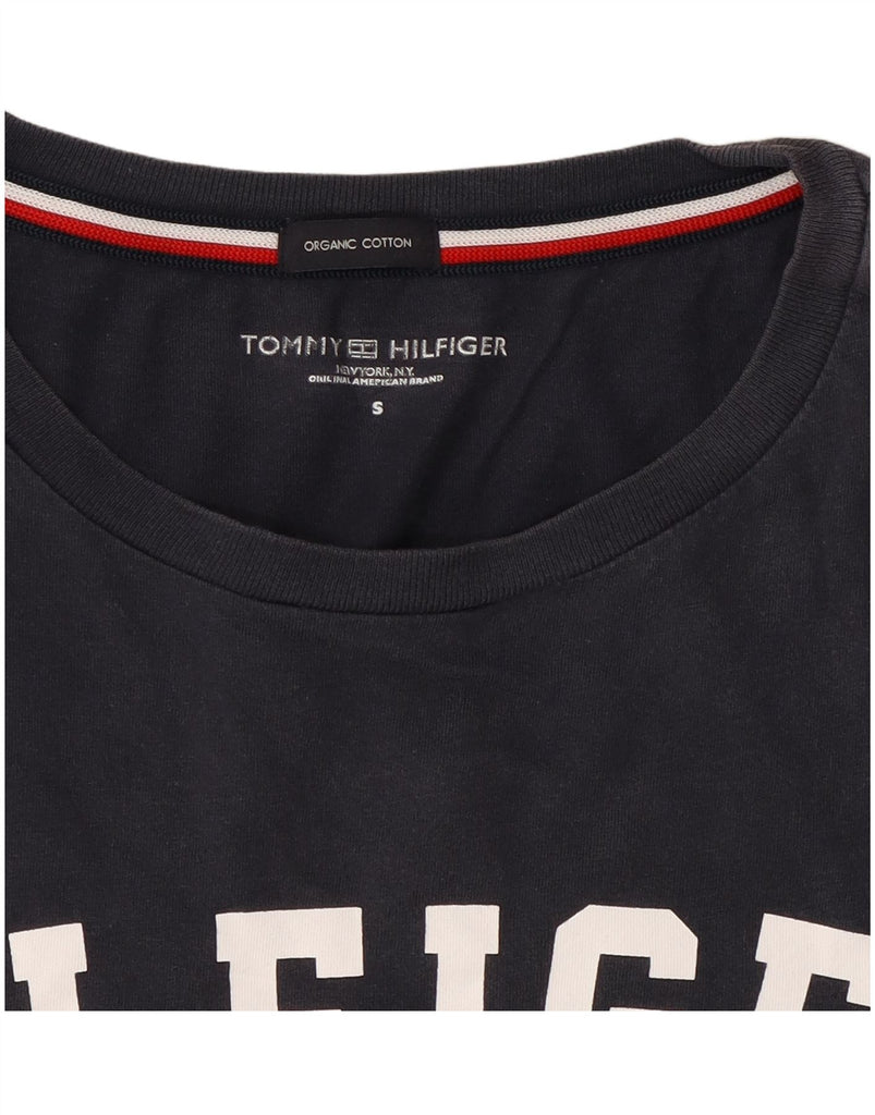 TOMMY HILFIGER Womens Graphic T-Shirt Top UK 10 Small Navy Blue Cotton