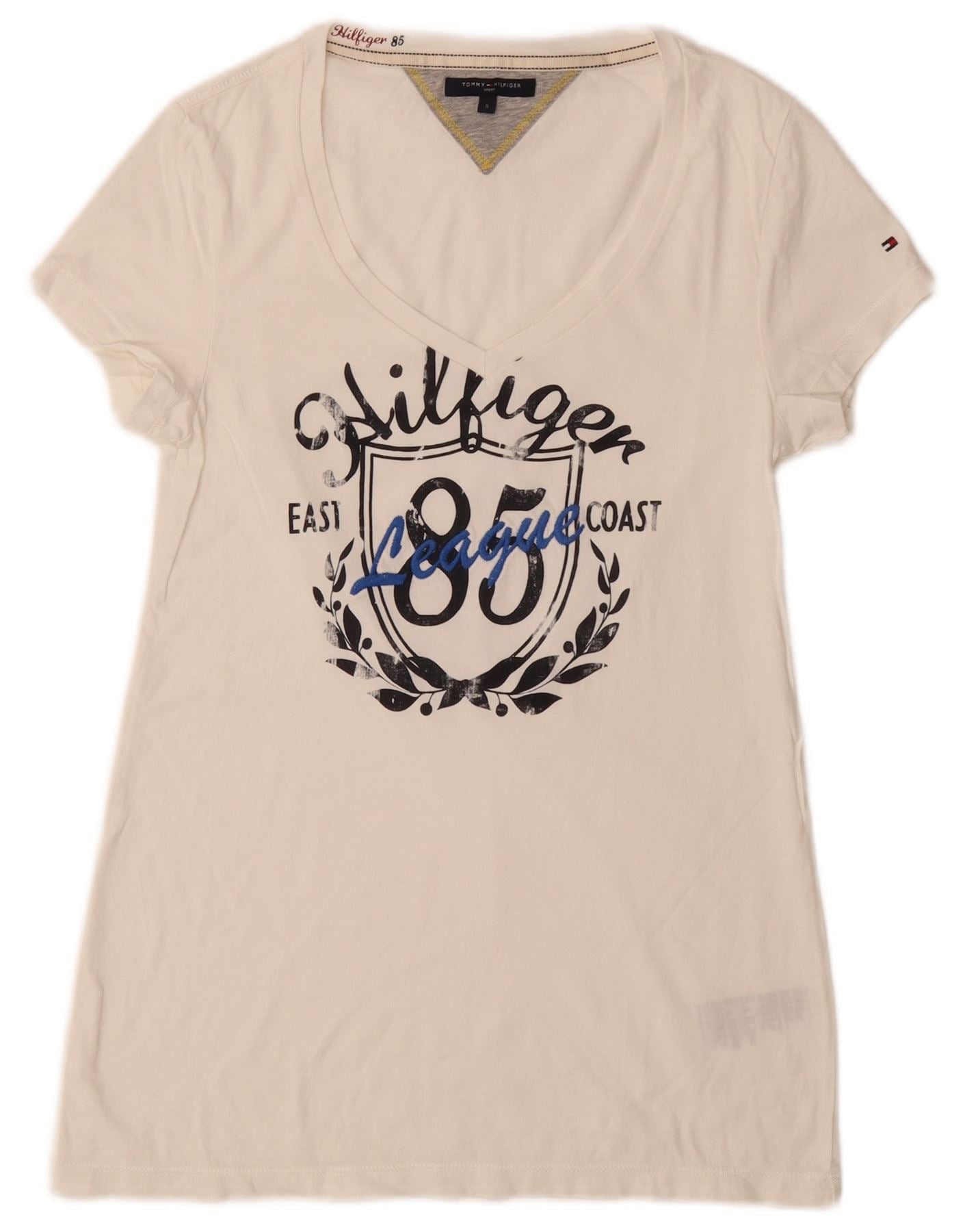 TOMMY HILFIGER Womens Graphic T-Shirt Top UK 10 Small White Cotton