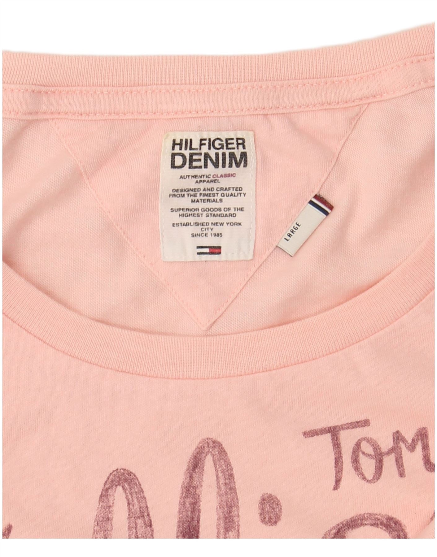 TOMMY HILFIGER Womens Graphic T-Shirt Top UK 14 Large Pink