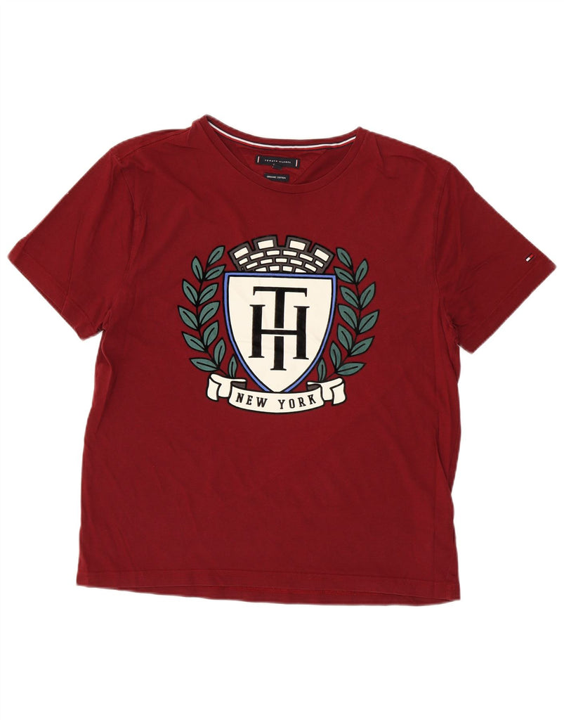TOMMY HILFIGER Womens Graphic T-Shirt Top UK 18 XL Maroon Cotton