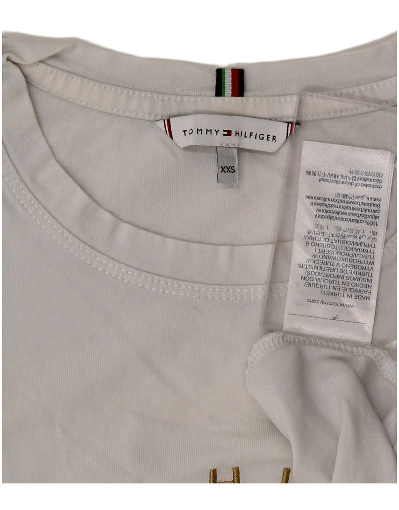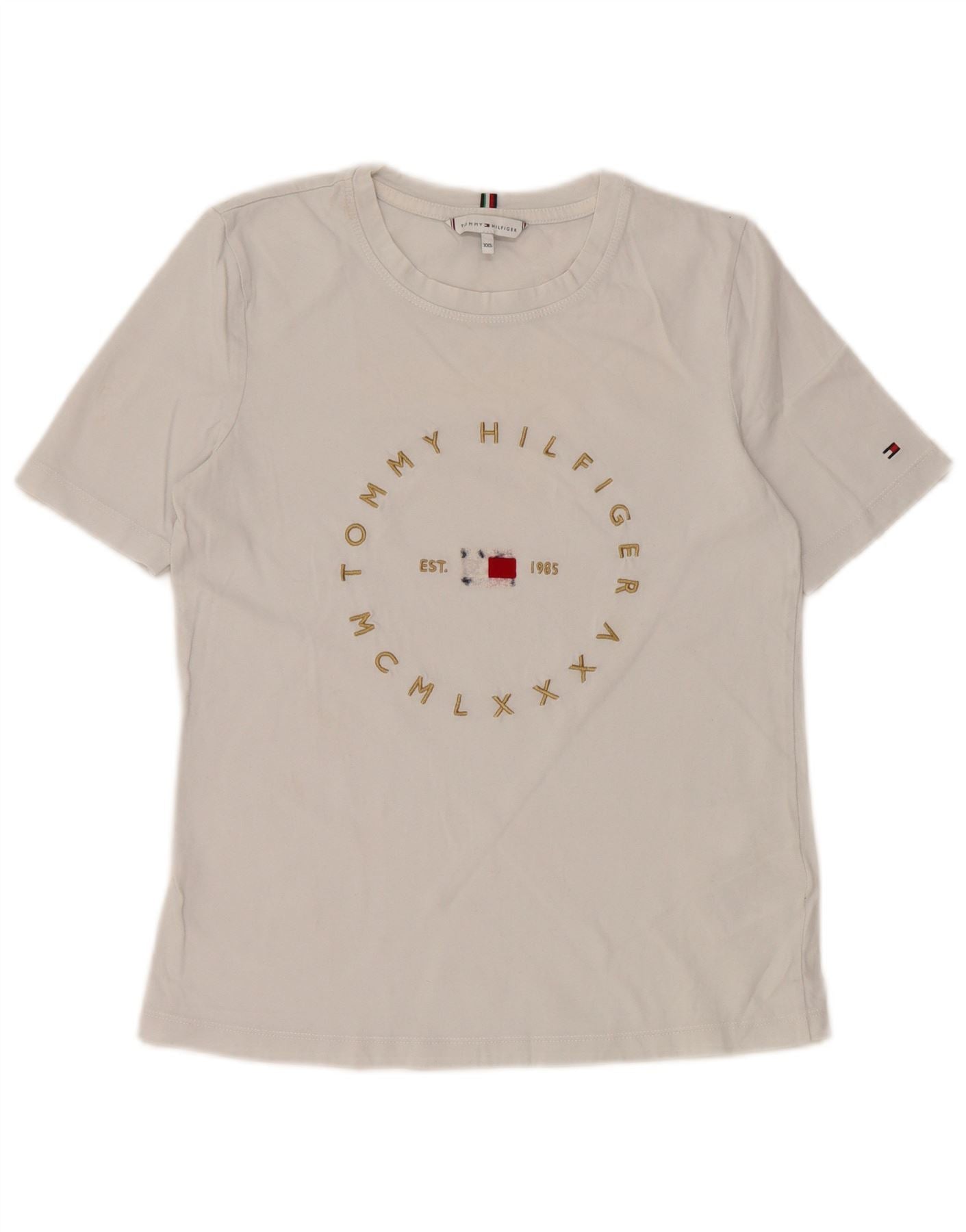 TOMMY HILFIGER Womens Graphic T-Shirt Top UK 2 2XS Off White Cotton