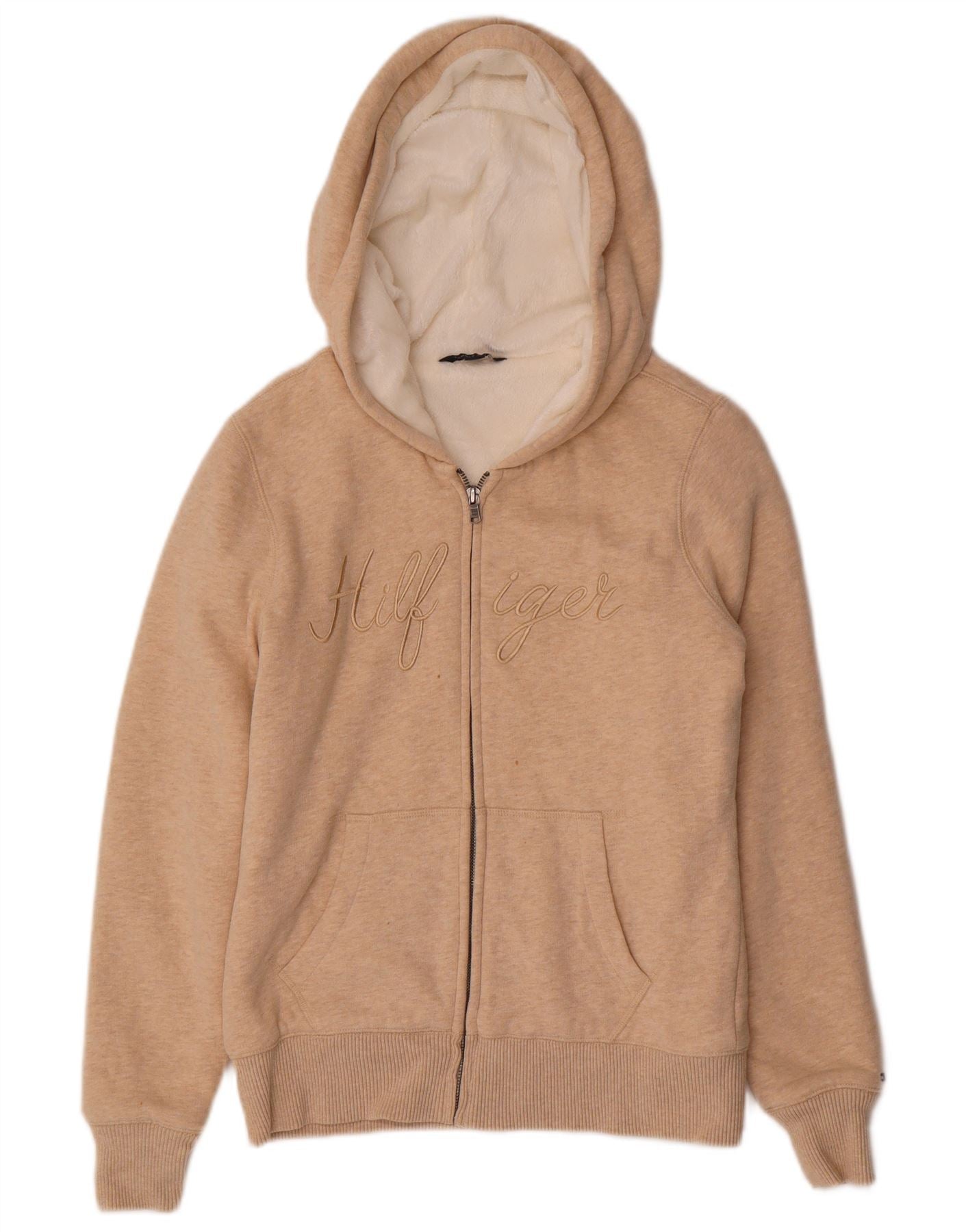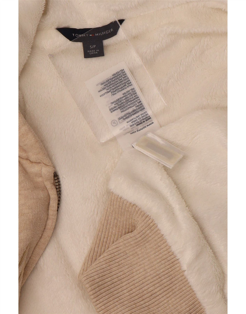 TOMMY HILFIGER Womens Graphic Zip Hoodie Sweater UK 10 Small Beige Cotton