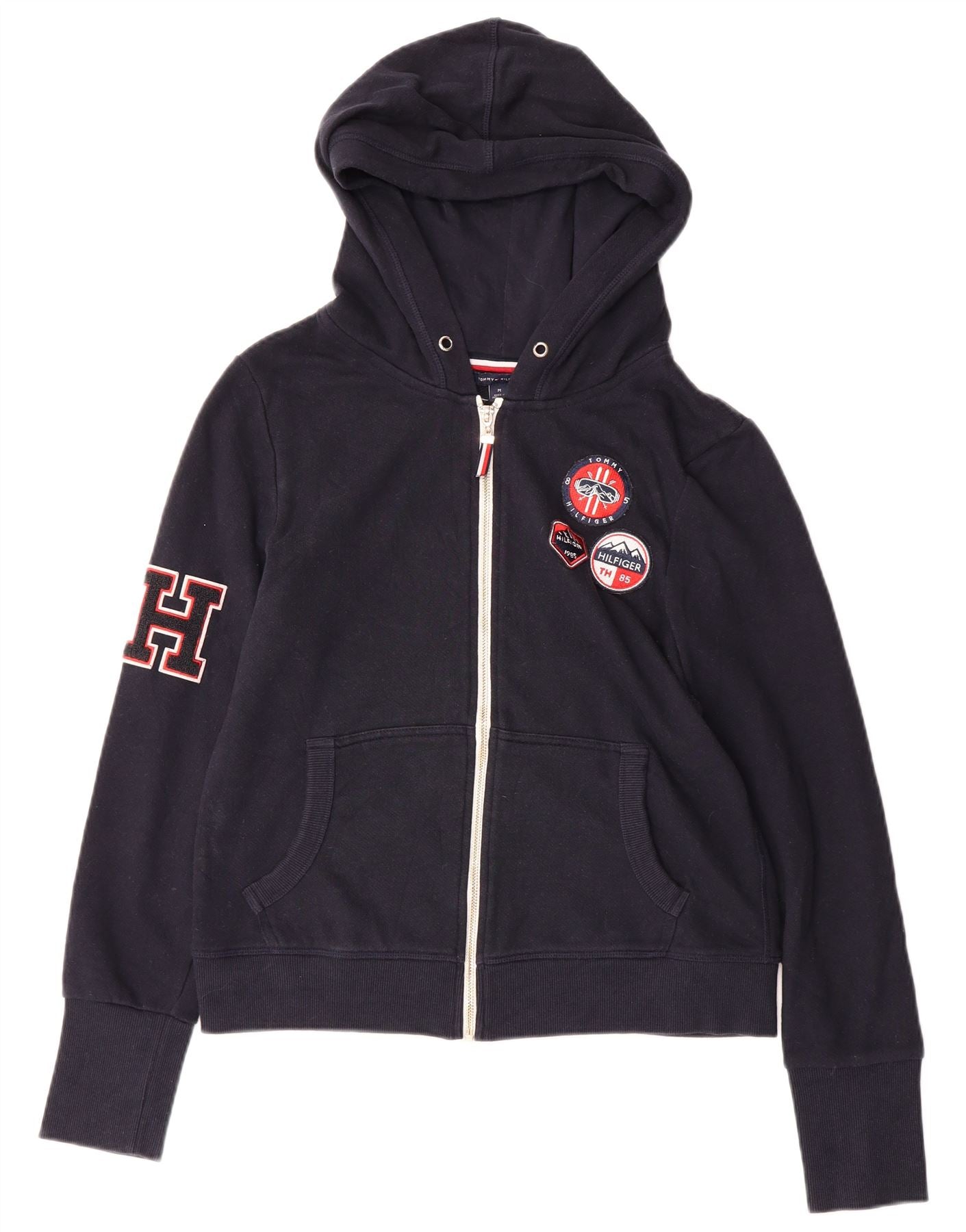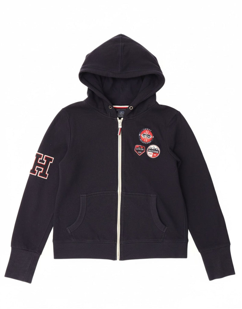 TOMMY HILFIGER Womens Graphic Zip Hoodie Sweater UK 14 Medium Navy Blue