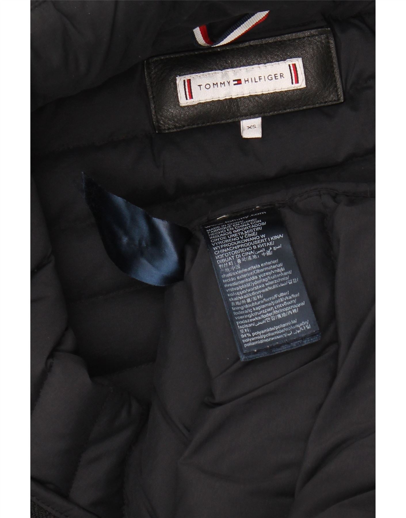 TOMMY HILFIGER Womens Hooded Padded Coat UK 6 XS Navy Blue Polyamide