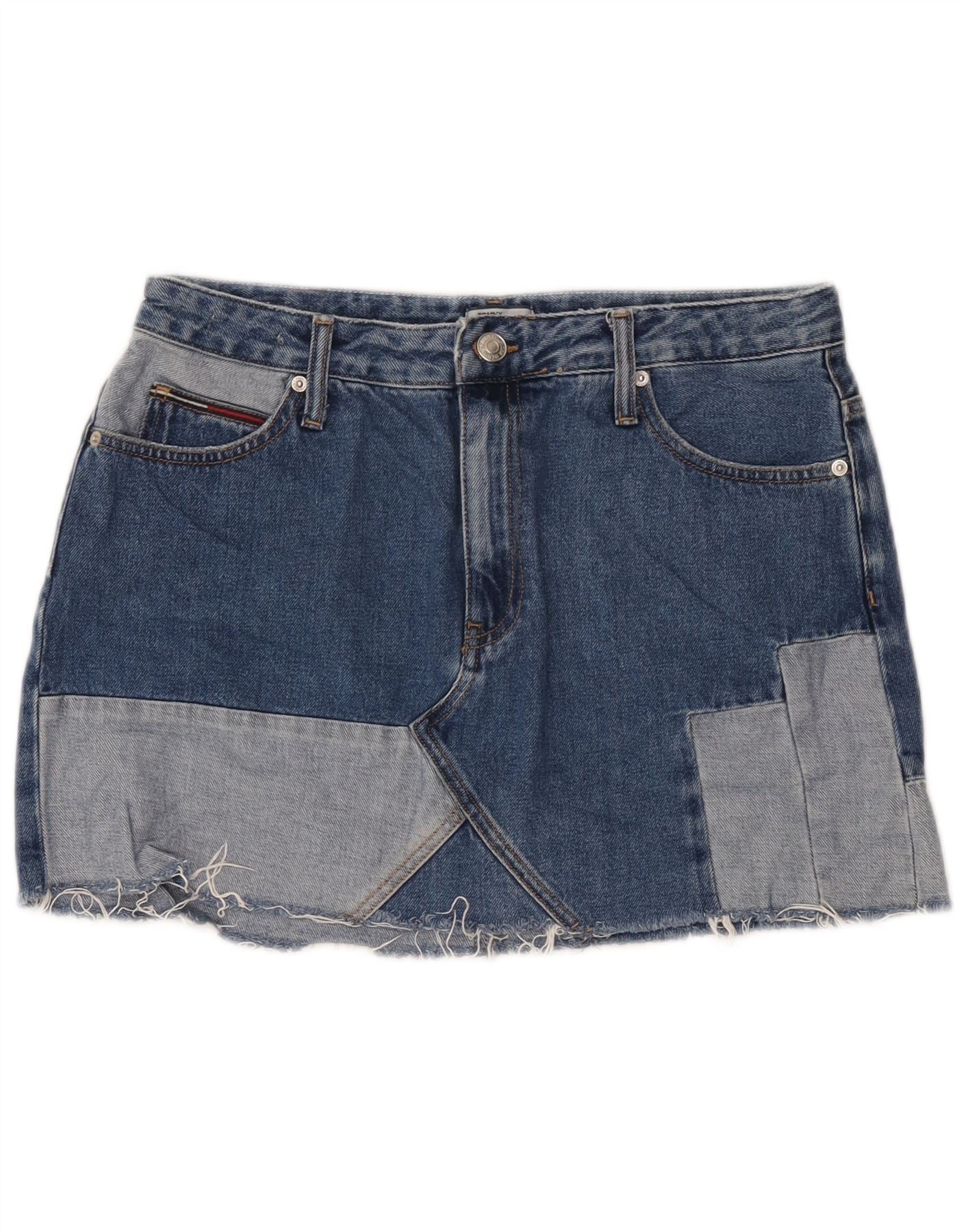 Tommy Hilfiger Womens Mini Denim Skirt Large W32 Blue Patchwork Cotton