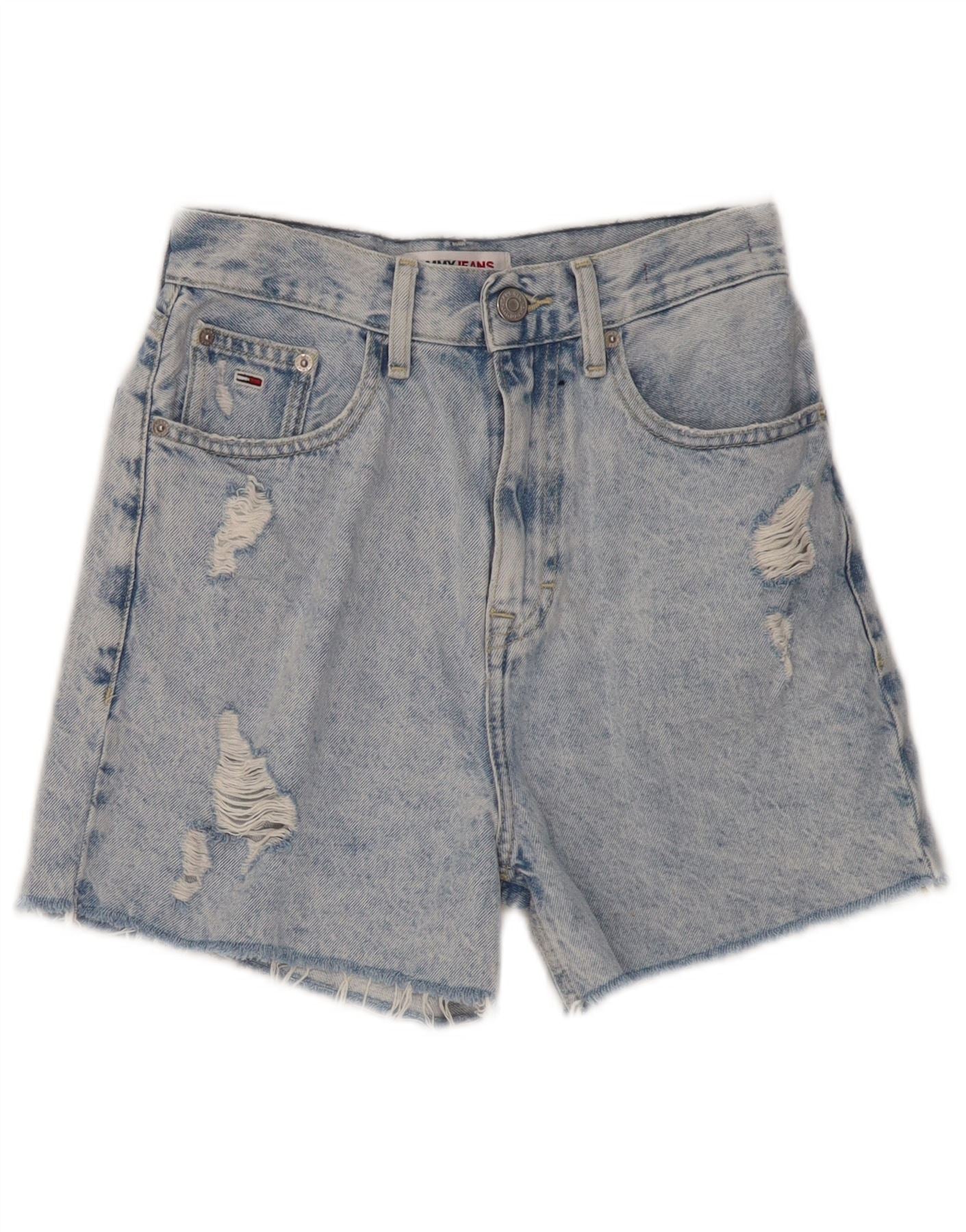 TOMMY HILFIGER Womens Mom Distressed High Waist Denim Shorts W24 XS Blue