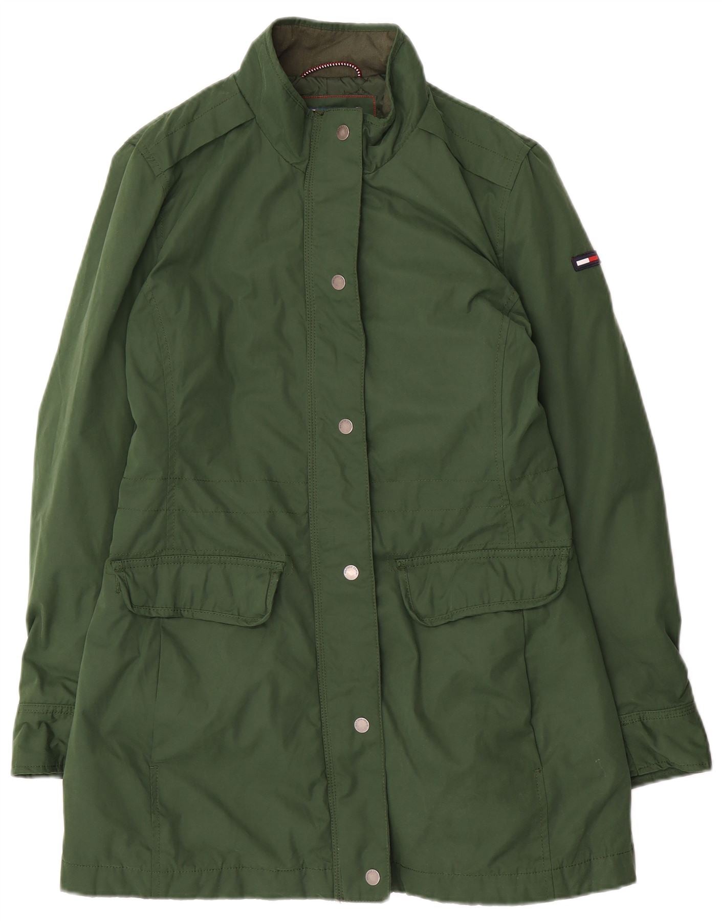 TOMMY HILFIGER Womens Overcoat UK 12 Medium Green Cotton