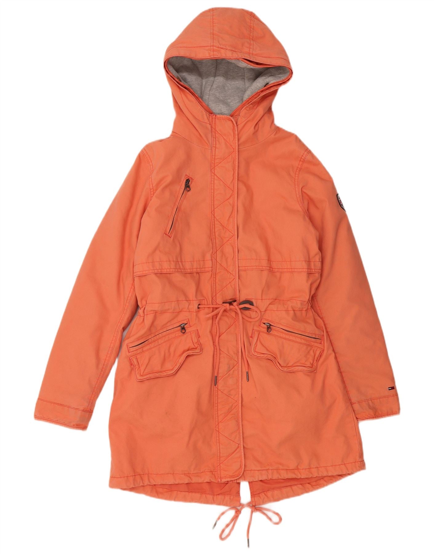 TOMMY HILFIGER Womens Oversized Hooded Parka Jacket UK 10 Small Orange