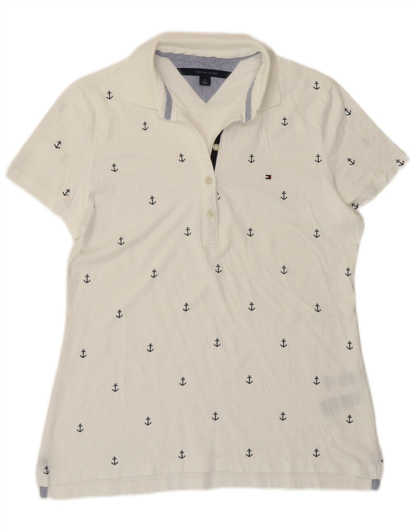 Tommy Hilfiger Womens Polo Shirt UK 12 Medium White Spotted Cotton Nautical