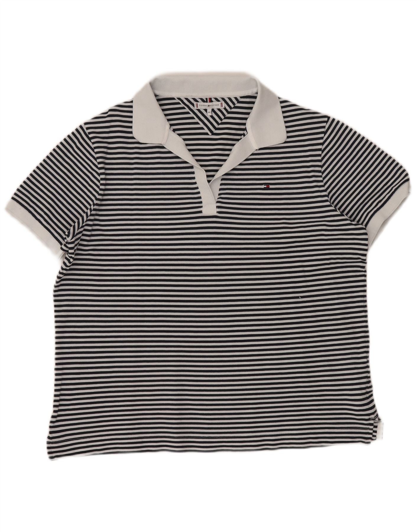 TOMMY HILFIGER Womens Polo Shirt UK 20 2XL Navy Blue Striped Nautical