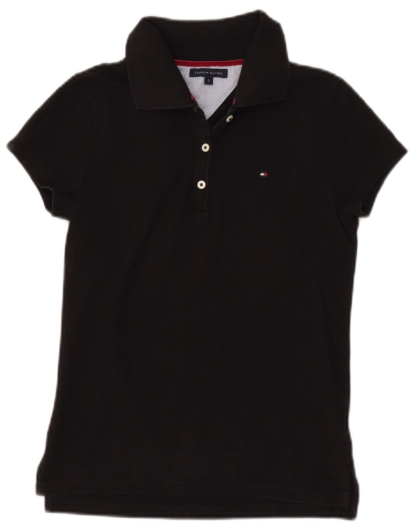 TOMMY HILFIGER Womens Polo Shirt UK 8 Small Black Cotton
