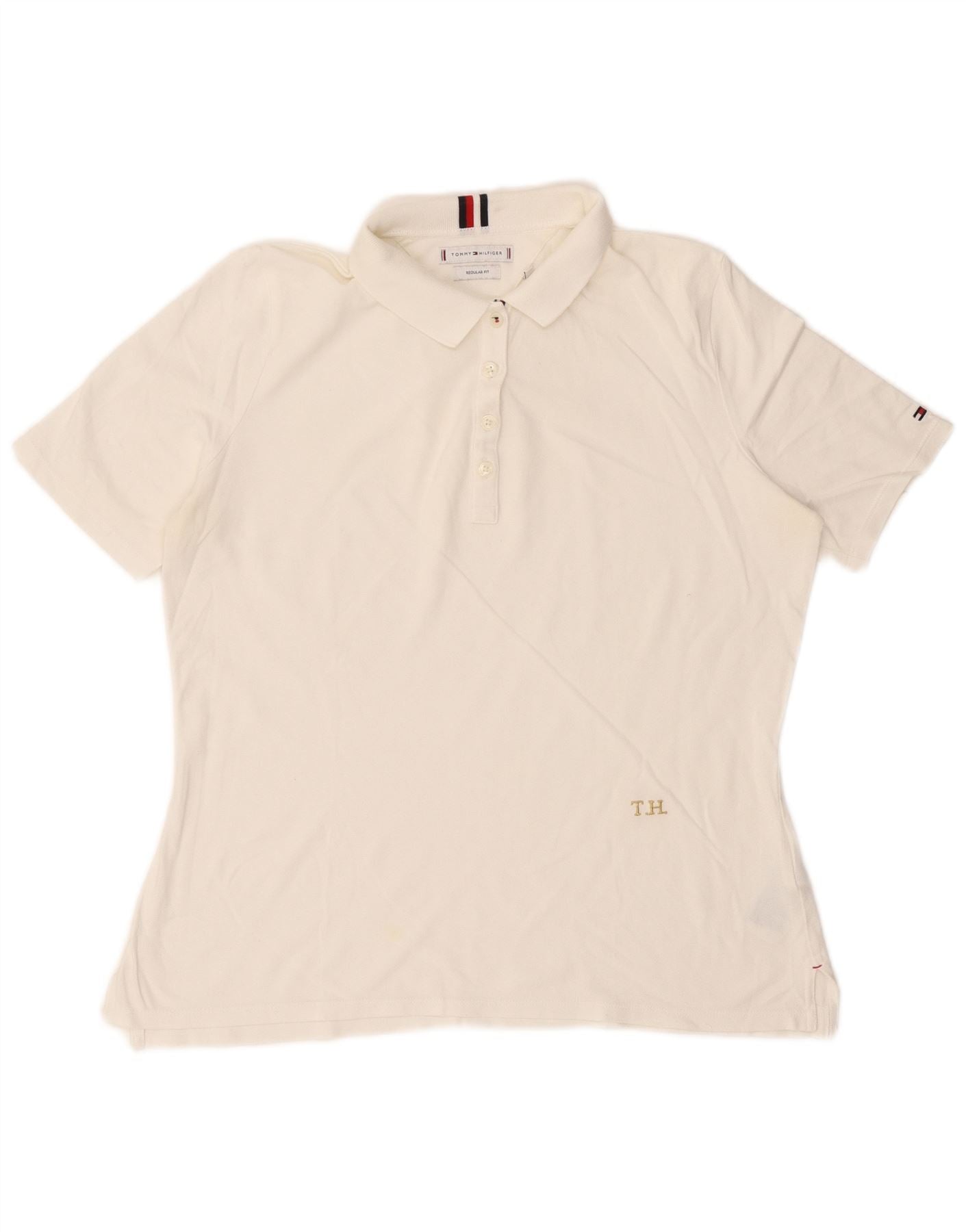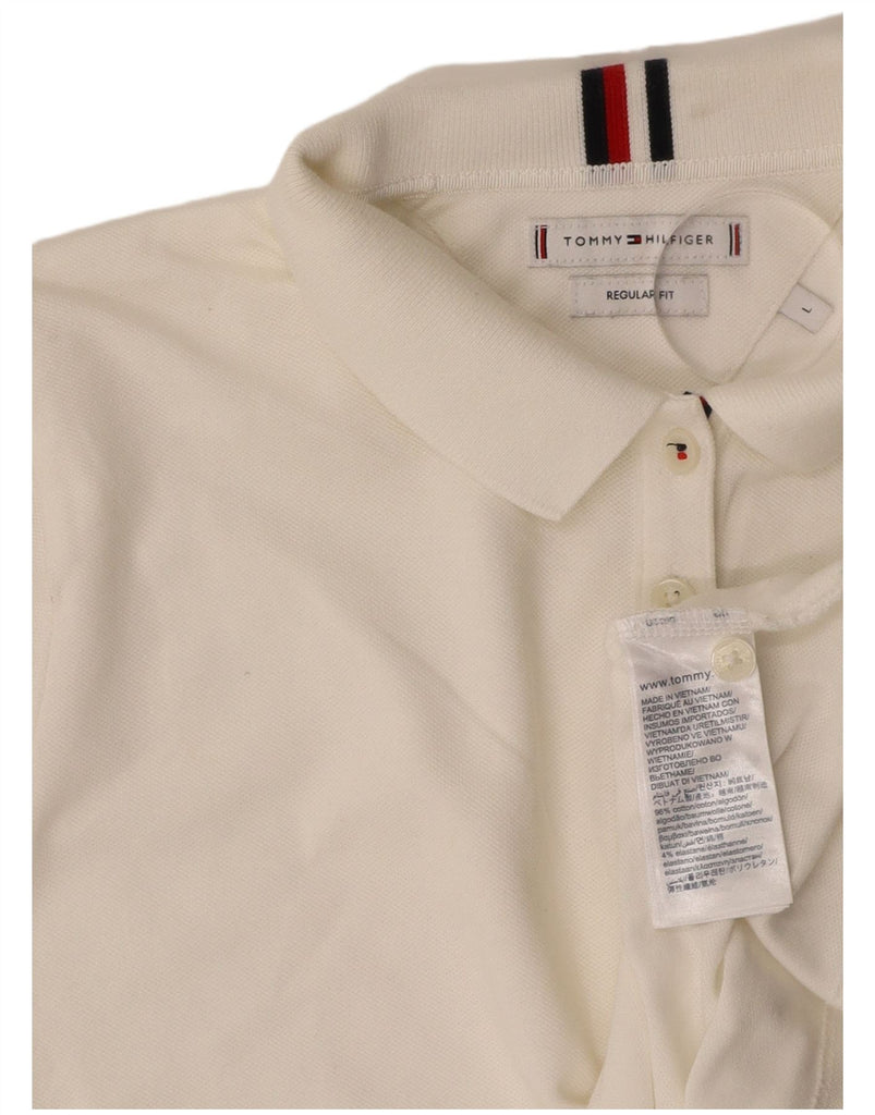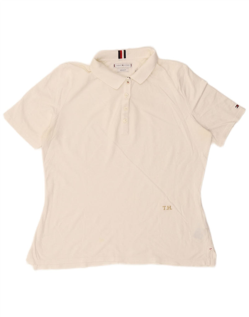 TOMMY HILFIGER Womens Regular Fit Polo Shirt UK 16 Large White Cotton