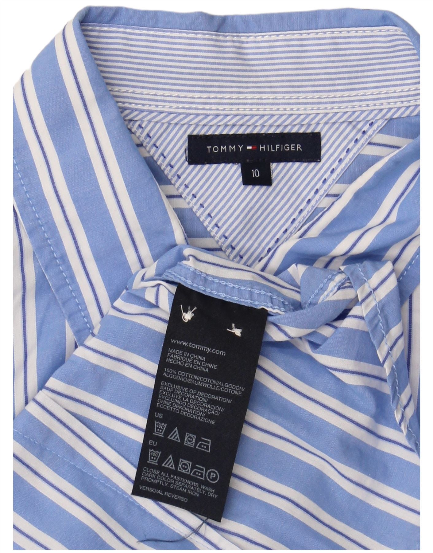 TOMMY HILFIGER Womens Ruffle Front Shirt US 10 Large Blue Striped Cotton