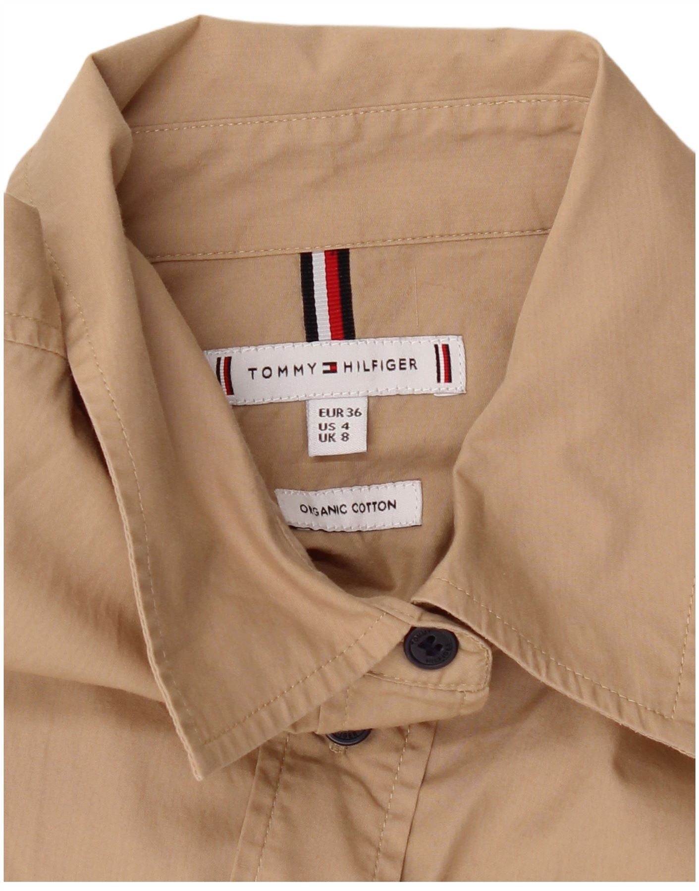 TOMMY HILFIGER Womens Shirt UK 8 Small Beige Cotton