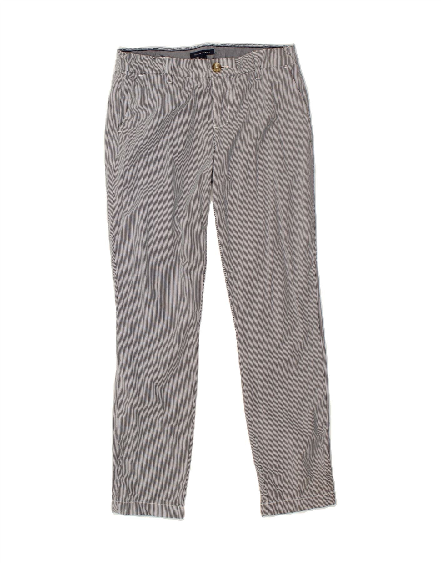 TOMMY HILFIGER Womens Slim Chino Trousers US 4 Small W27 L30 Grey Striped