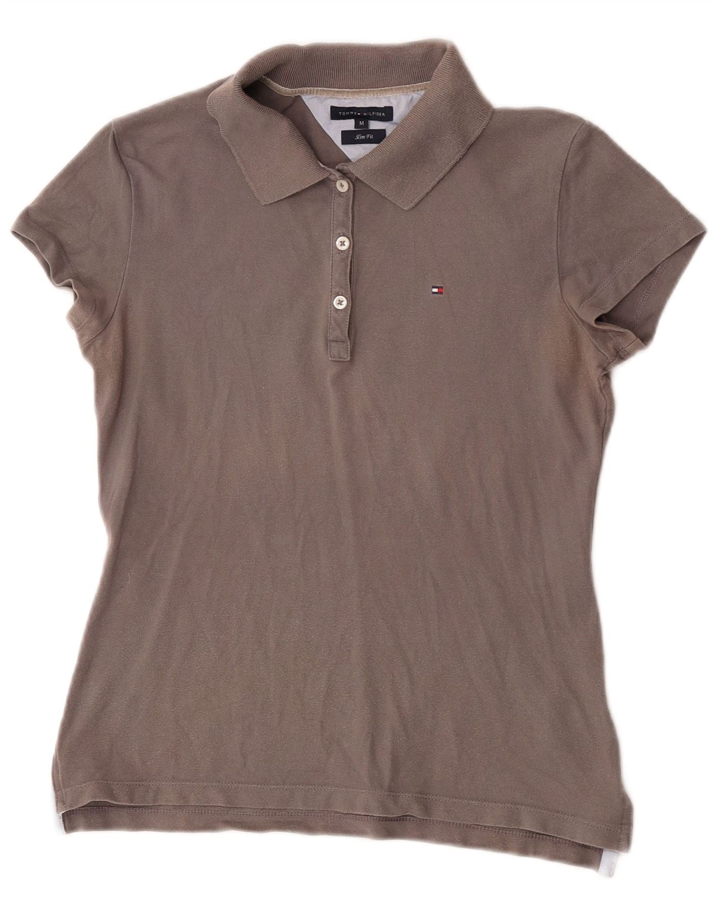 Tommy Hilfiger Womens Slim Fit Polo Shirt UK 12 Medium Grey Cotton