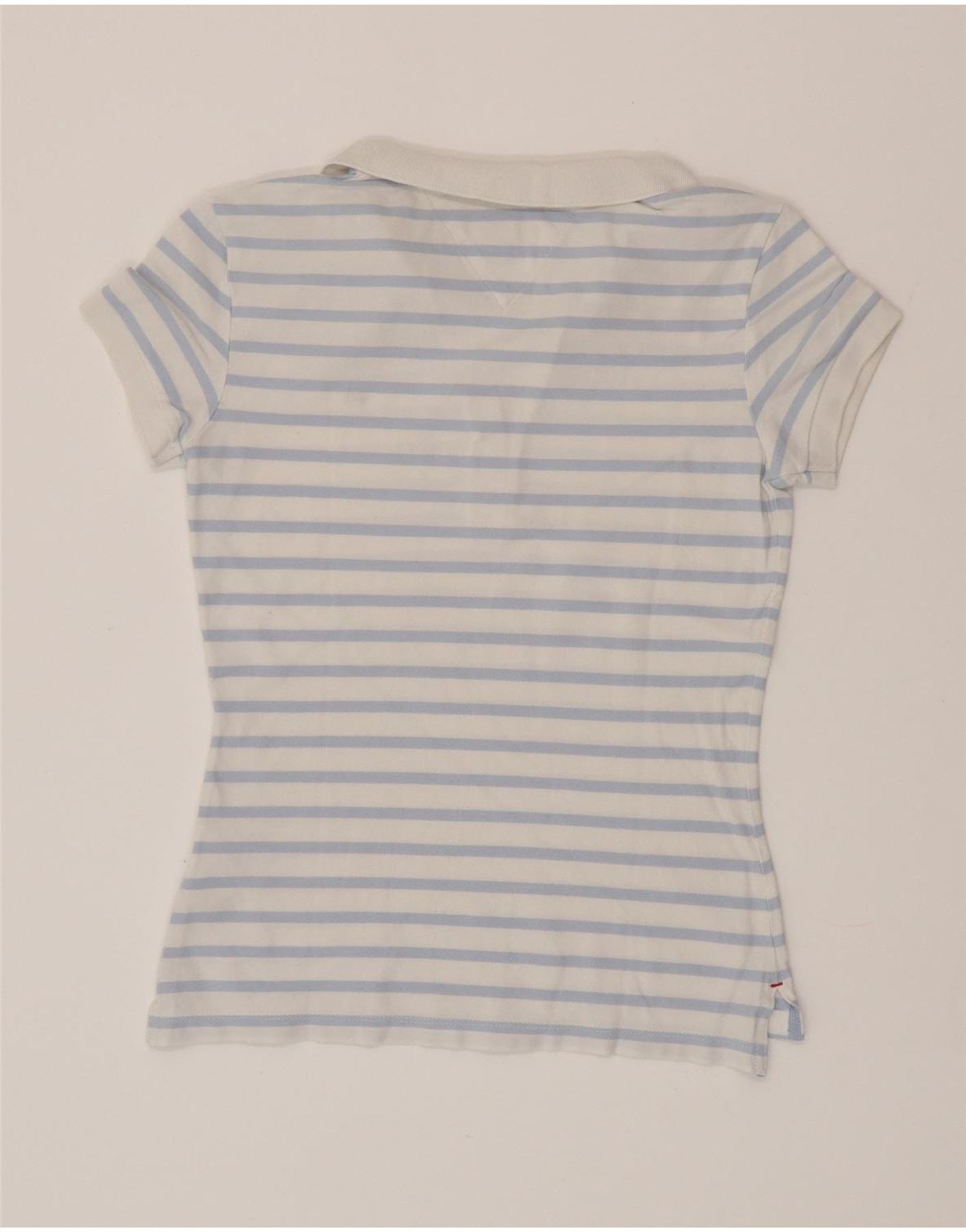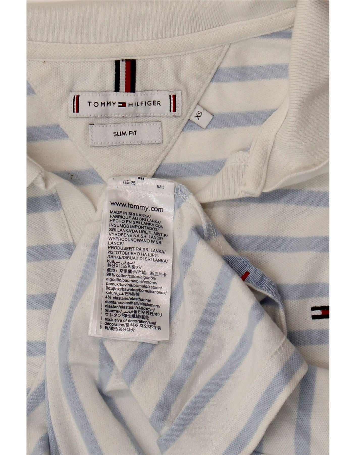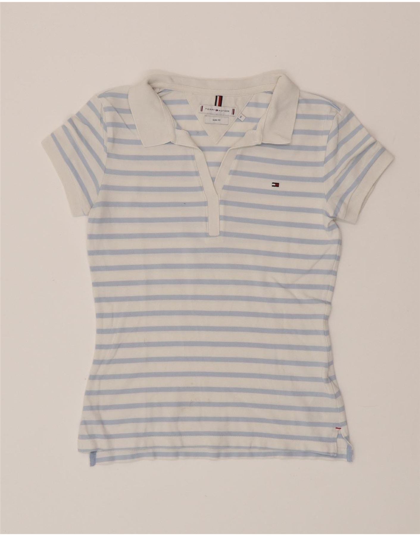 TOMMY HILFIGER Womens Slim Fit Polo Shirt UK 6 XS Blue Striped Cotton