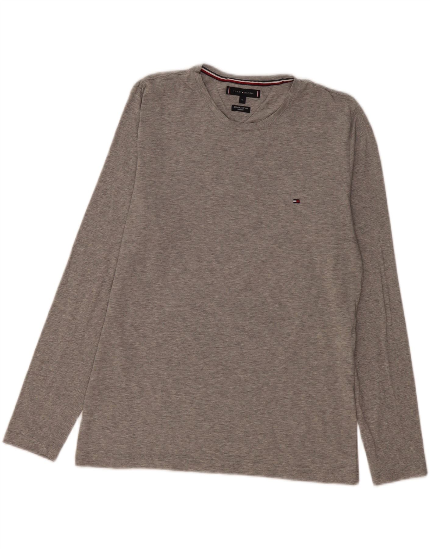 TOMMY HILFIGER Womens Slim Fit Top Long Sleeve UK 18 XL Grey Cotton