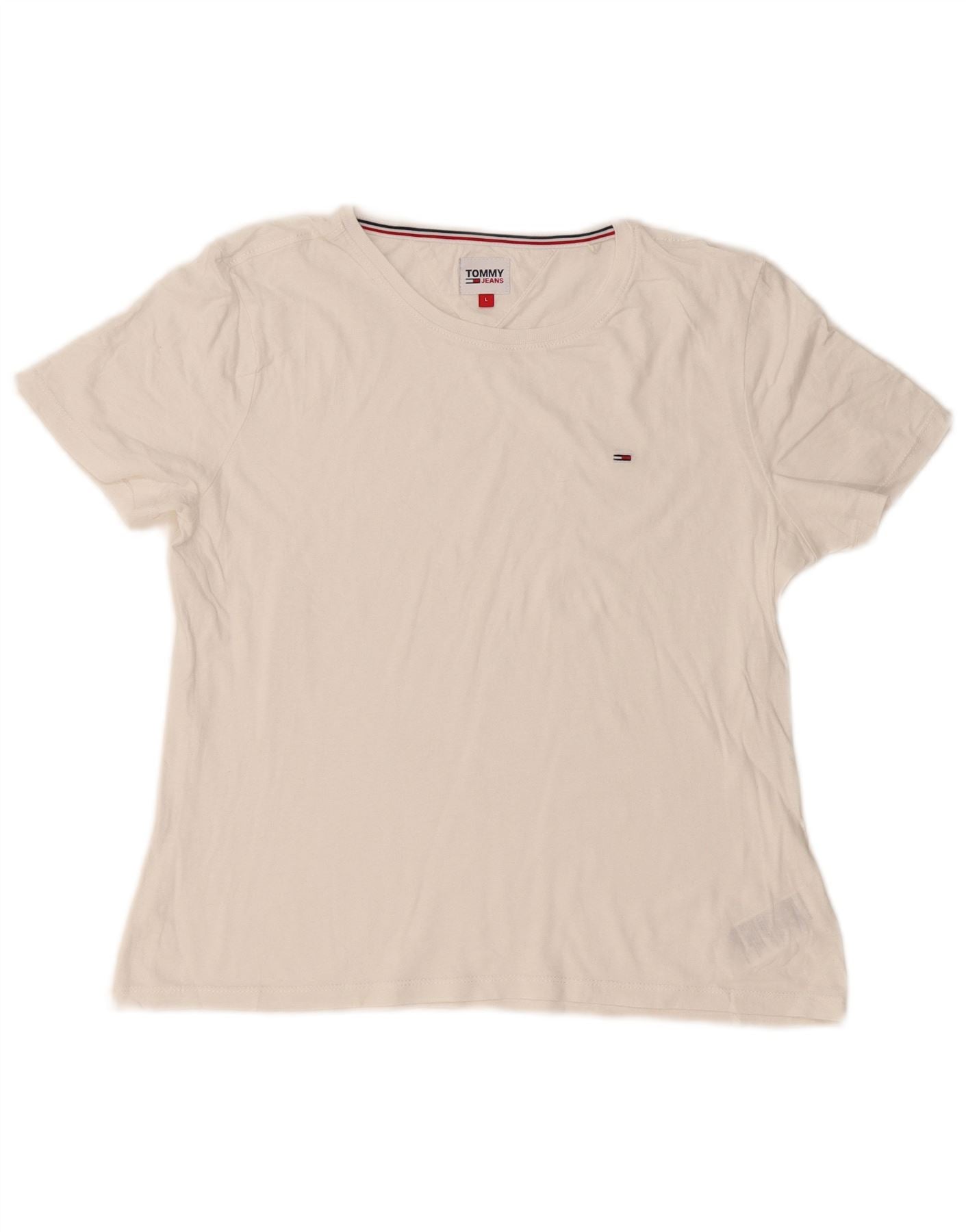 TOMMY HILFIGER Womens T-Shirt Top UK 14 Large White Cotton