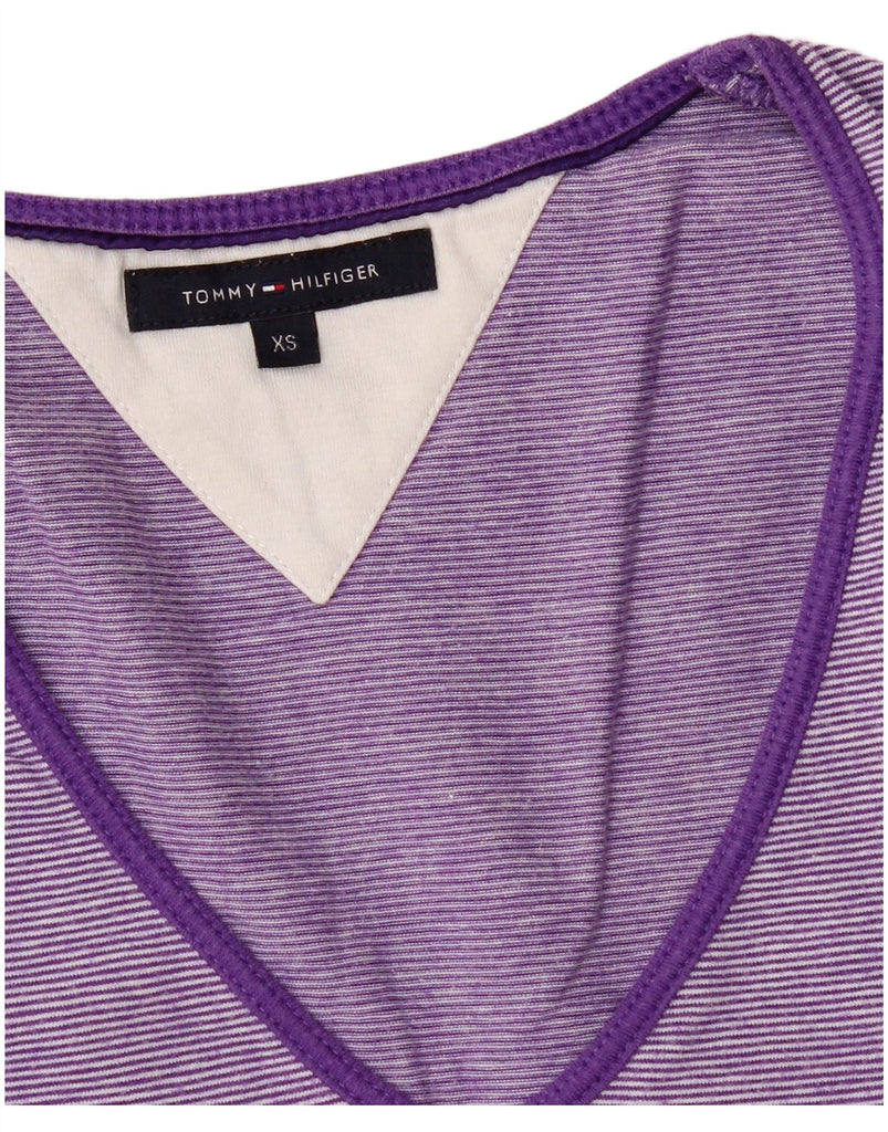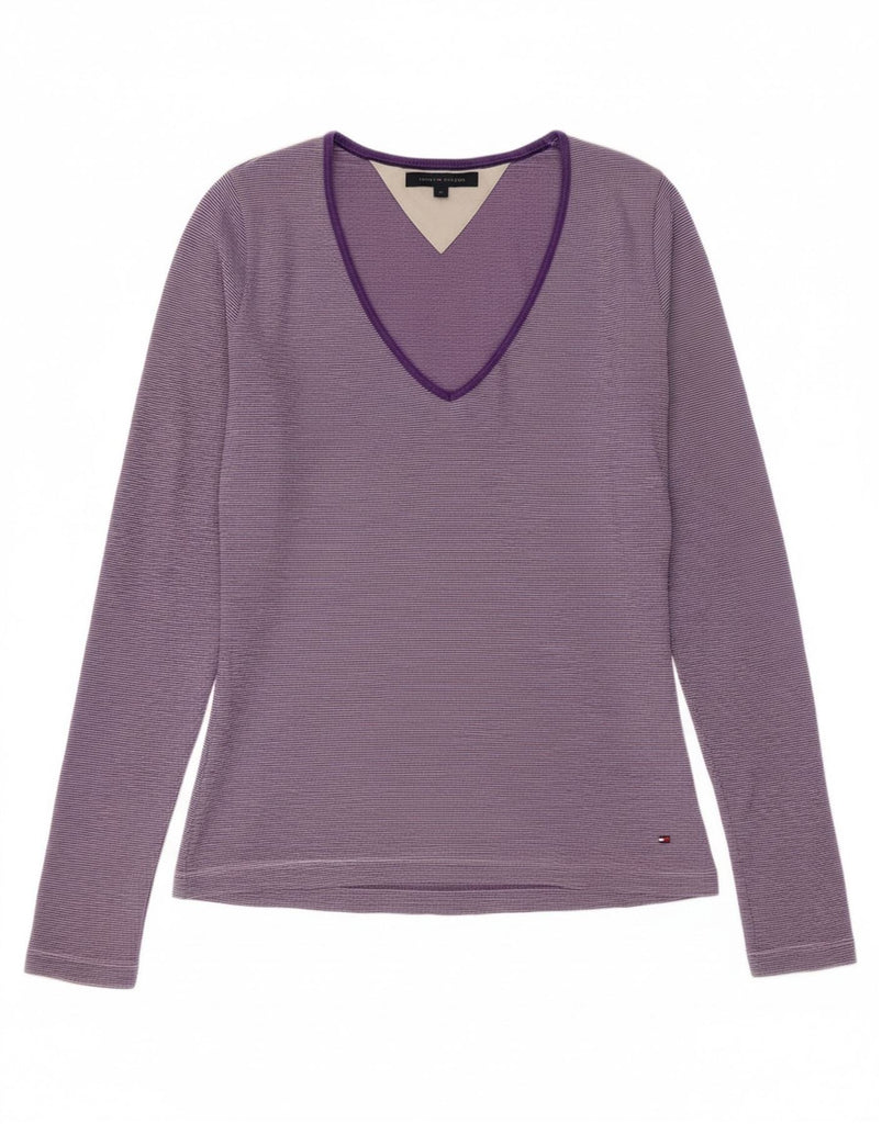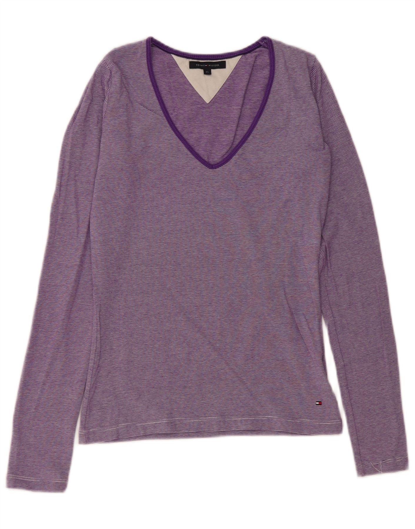 TOMMY HILFIGER Womens Top Long Sleeve UK 18 XS Purple Striped Cotton