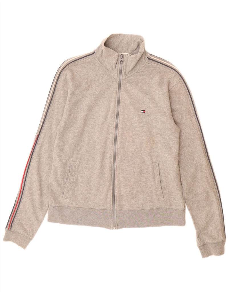 TOMMY HILFIGER Womens Tracksuit Top Jacket UK 14 Medium Grey Cotton