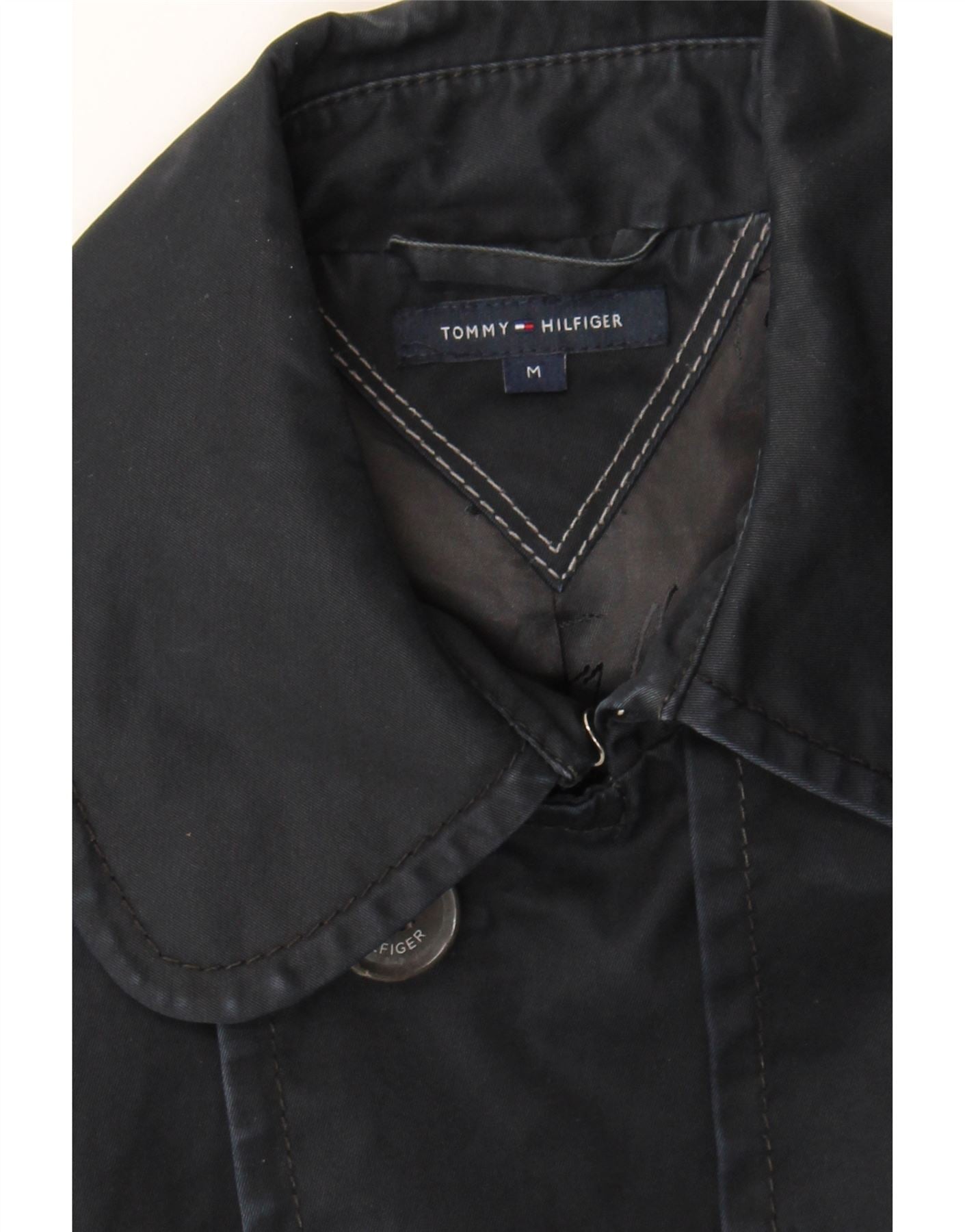 TOMMY HILFIGER Womens Trench Coat UK 14 Medium Navy Blue Cotton