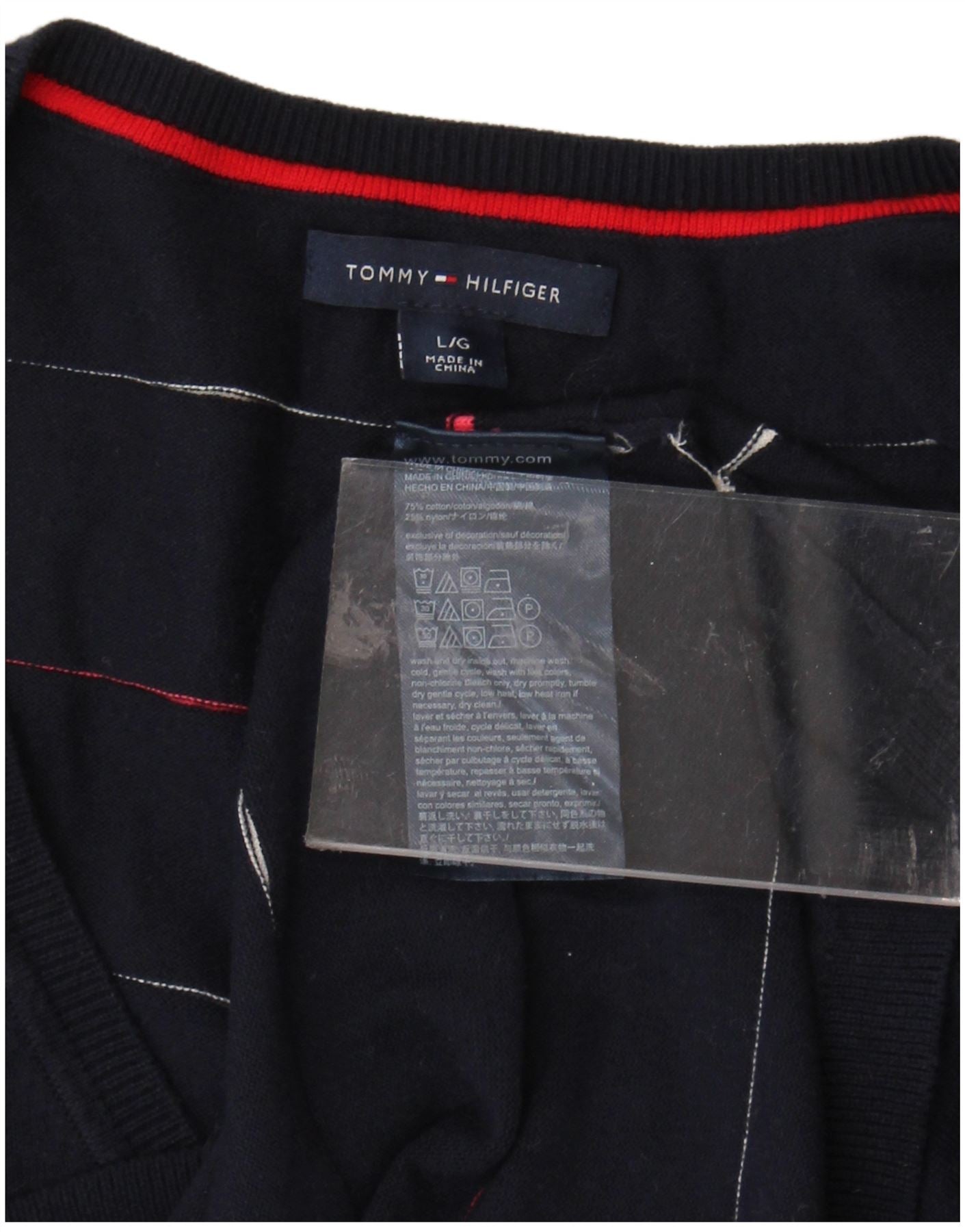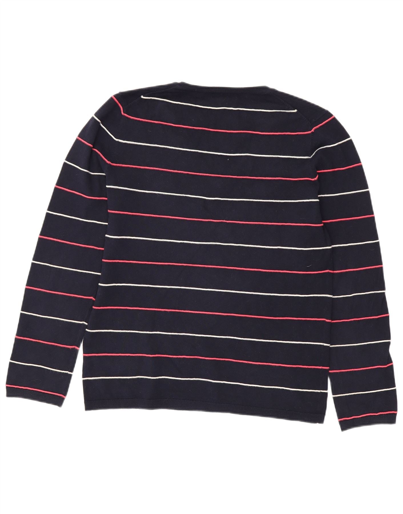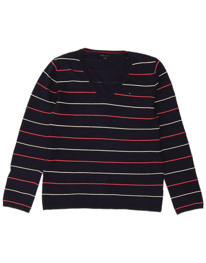 TOMMY HILFIGER Womens V-Neck Jumper Sweater UK 14 Large Navy Blue Striped