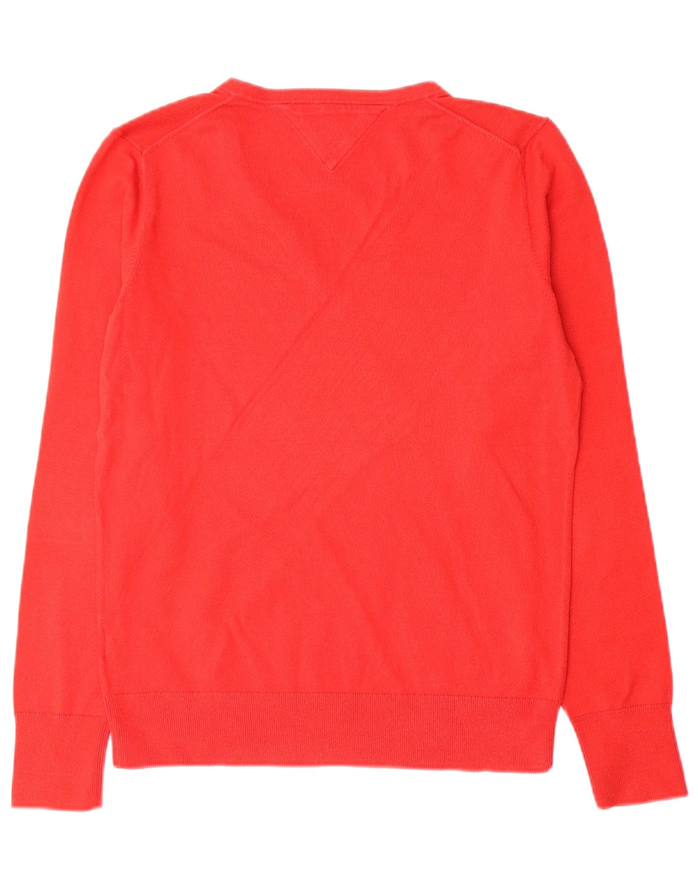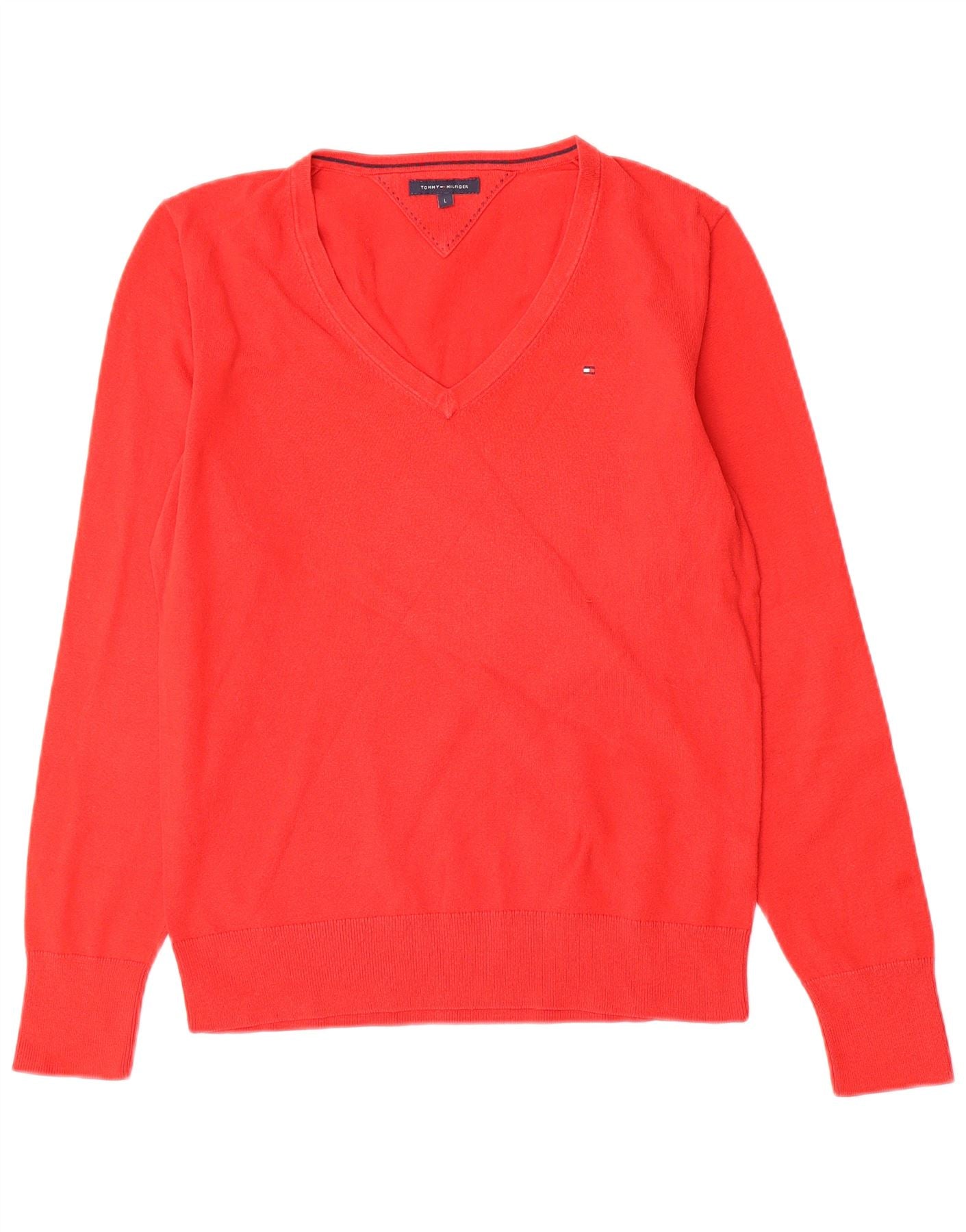 TOMMY HILFIGER Womens V-Neck Jumper Sweater UK 16 Large Red Cotton