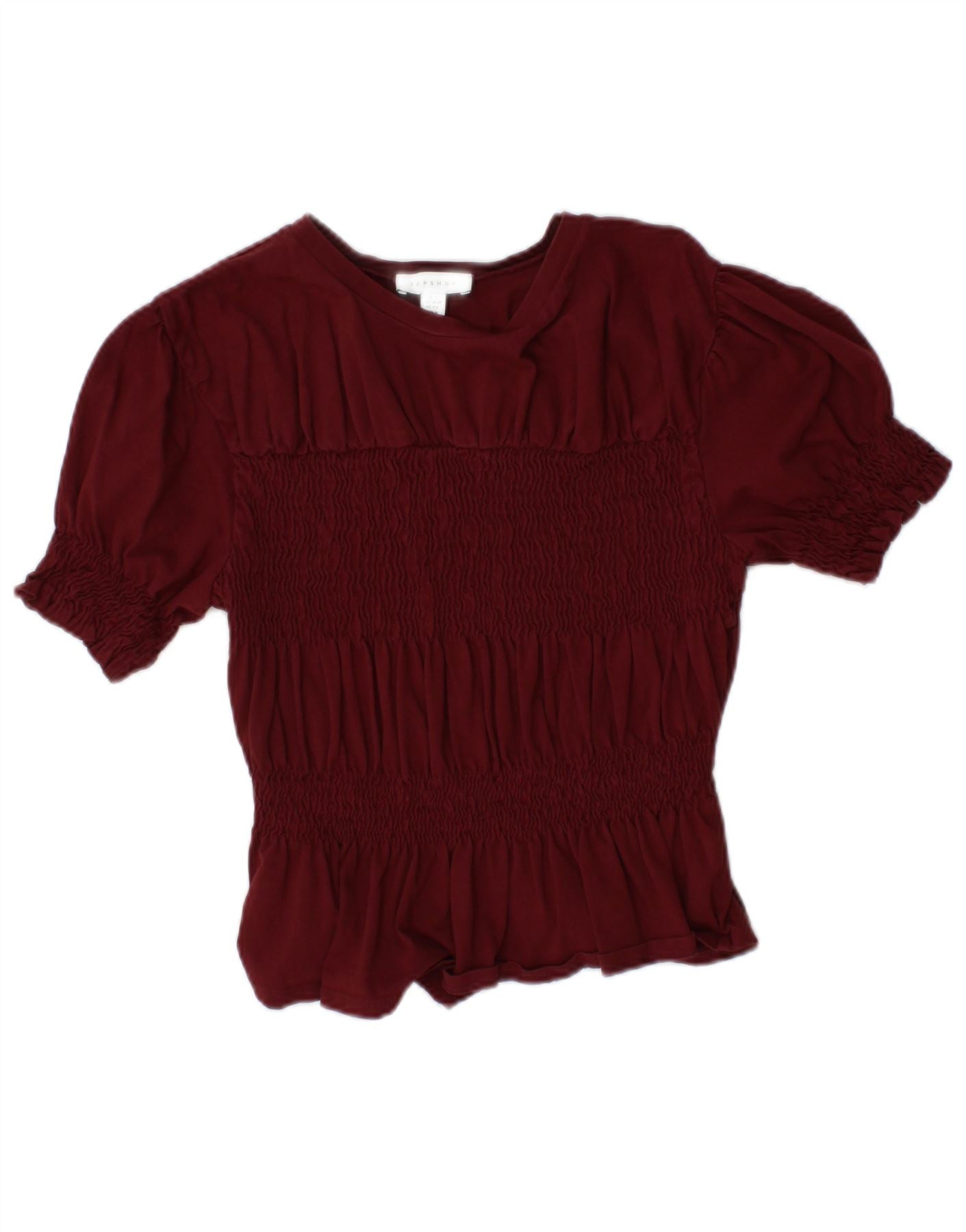 TOPSHOP Womens Crop Blouse Top UK 10 Small Burgundy Cotton