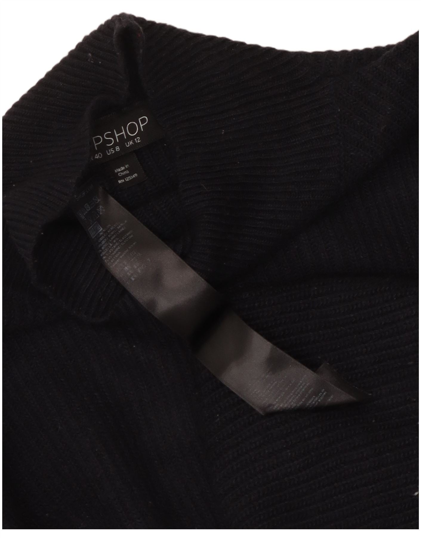 Topshop Womens Crop Turtle Neck Jumper Sweater UK 12 Medium Navy Blue Nylon