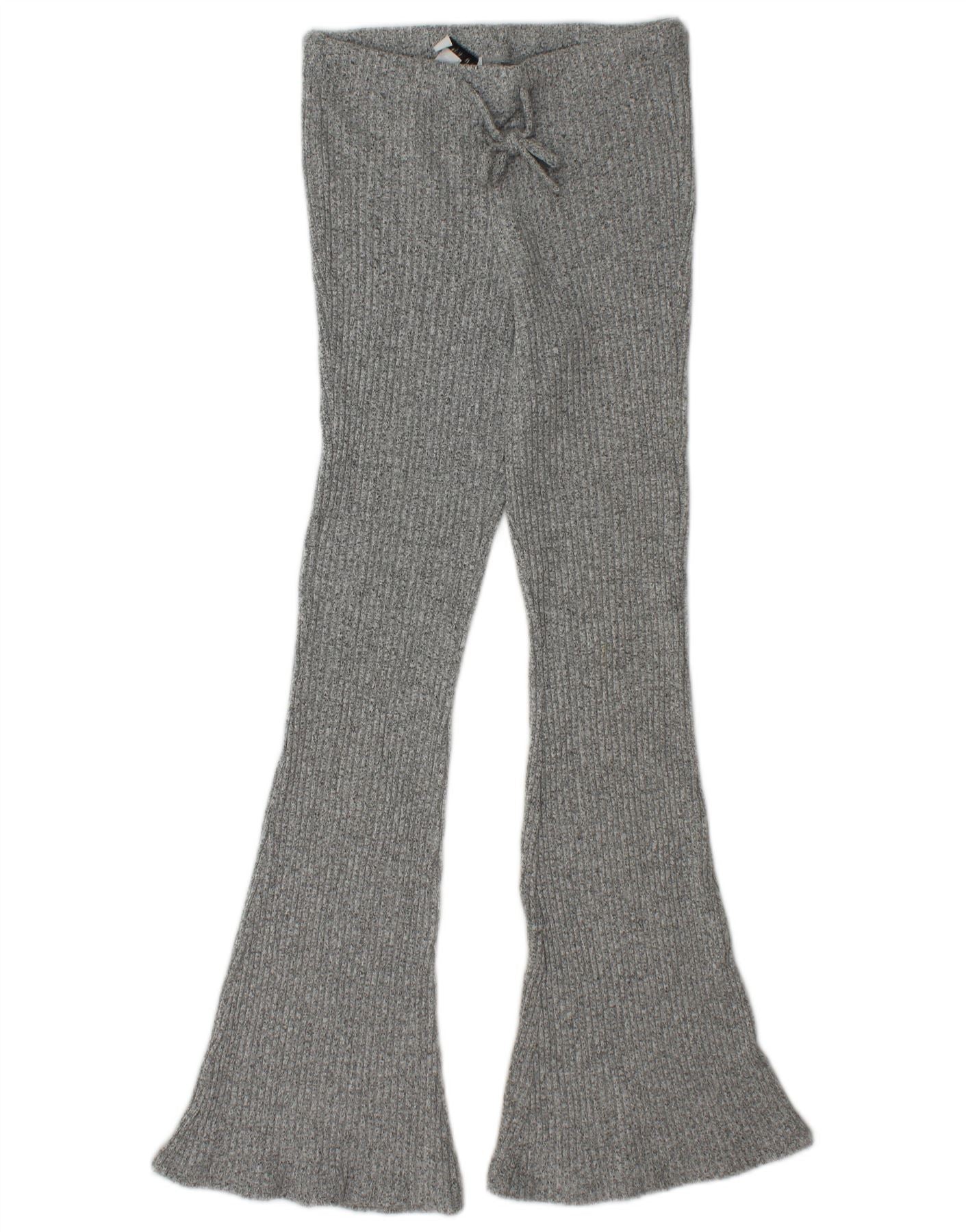TOPSHOP Womens Knit Flare Casual Trousers UK 8 Small W26 L29 Grey Viscose