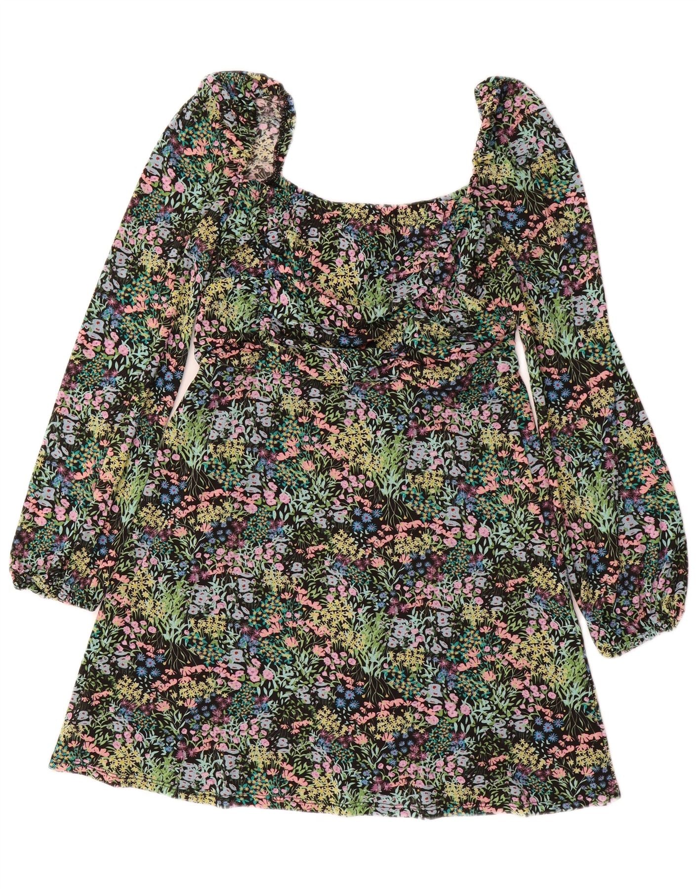 - AI Description: This Topshop womens A-line dress is crafted from woven polyester, offering a light, flowing feel. It features a vibrant multicoloured floral pattern against a dark background. The square neckline provides a distinctive, elegant shape. Long sleeves add a touch of sophistication. The regular fit and A-line silhouette ensure comfortable wear and graceful movement. This pullover style is easy to wear.