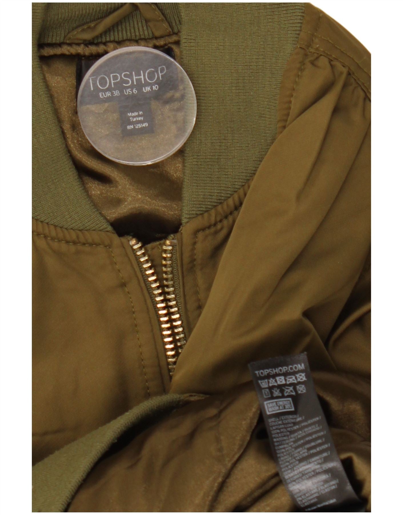 TOPSHOP Womens Oversized Bomber Jacket UK 10 Small Khaki Polyester