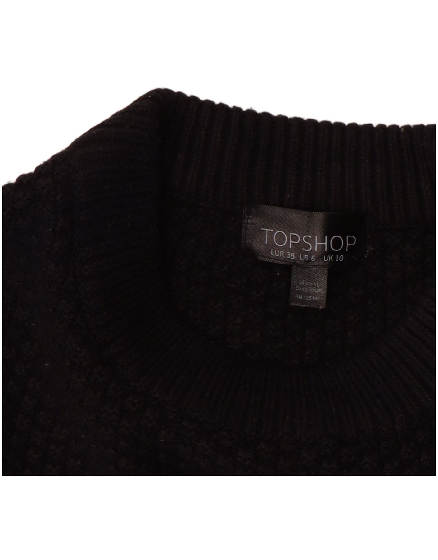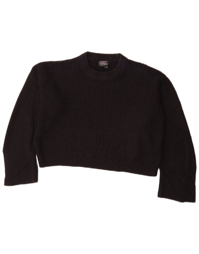 TOPSHOP Womens Oversized Crop Crew Neck Jumper Sweater UK 10 Small Black