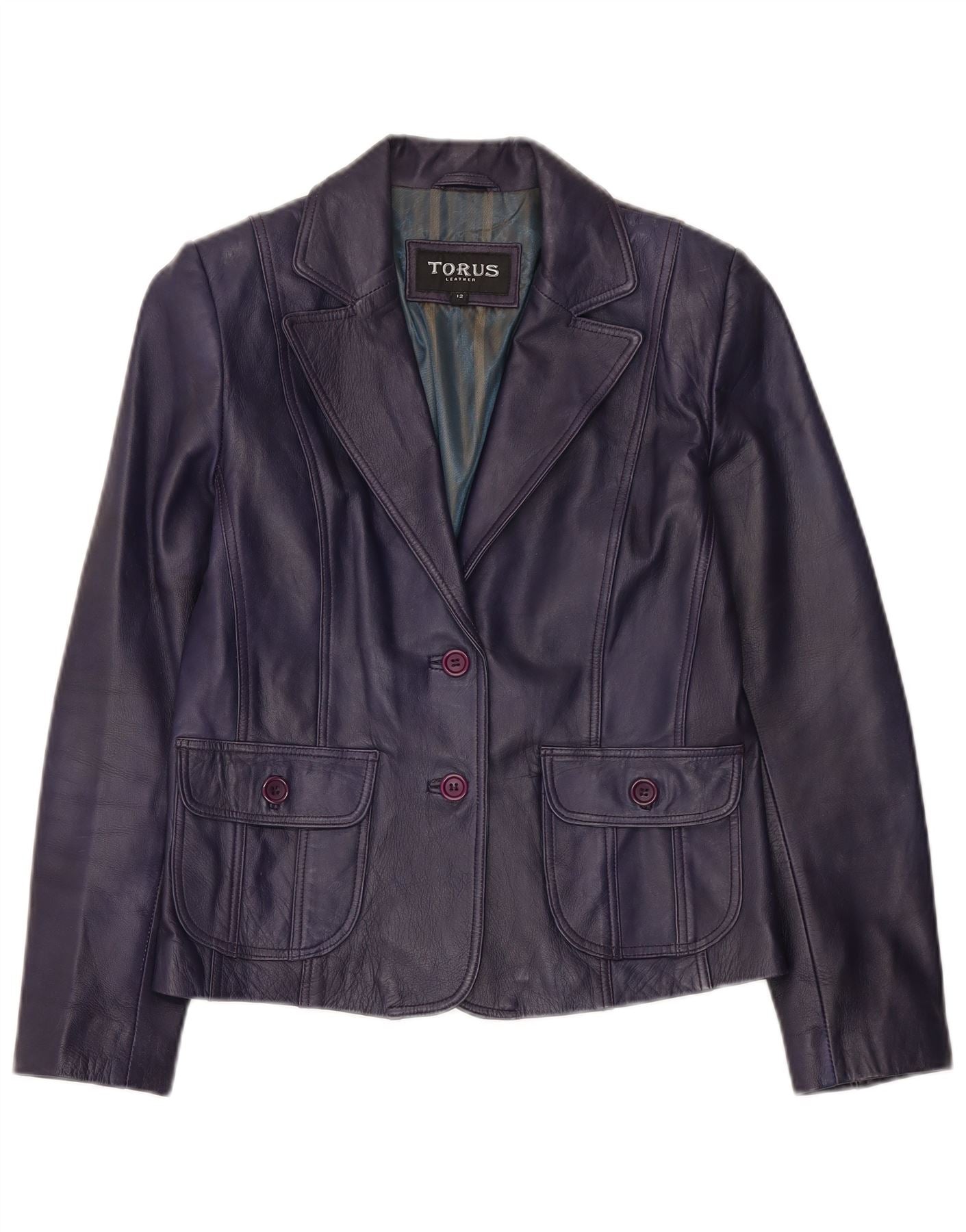 TORUS Womens 2 Button Leather Blazer Jacket UK 12 Medium Purple Leather
