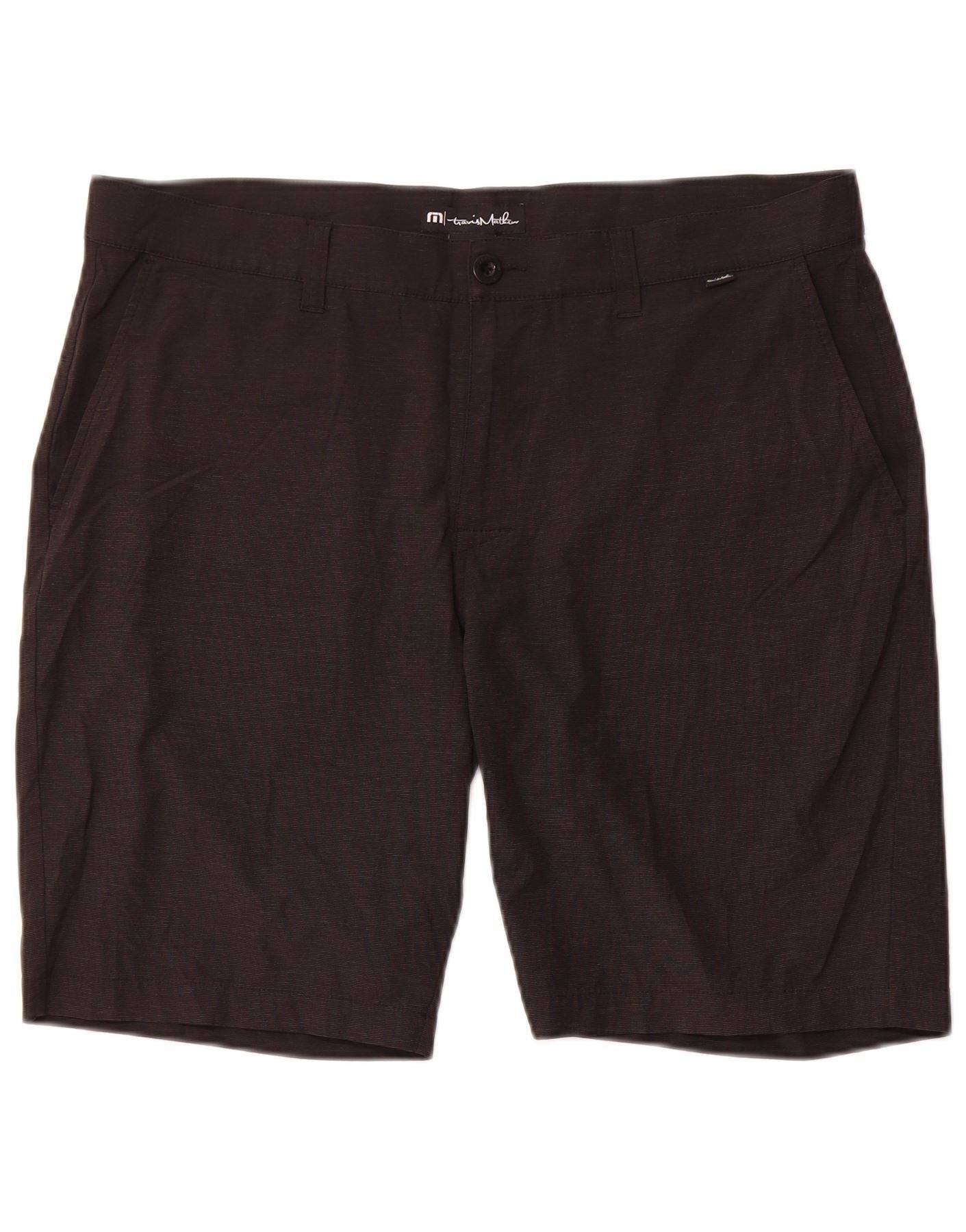 - AI Description: This Travis Mathew mens chino shorts are crafted from a comfortable black blended fabric. The material offers stretch for ease of movement, ideal for sports like golf. A button and zip closure secures the waist, providing a clean front. The regular fit ensures a classic, comfortable silhouette. Practical pockets add functionality to this versatile design.