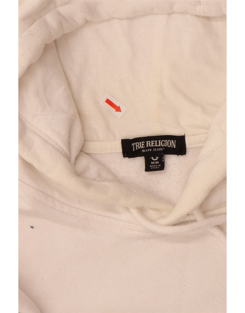 TRUE RELIGION Mens Graphic Hoodie Jumper Medium White Cotton