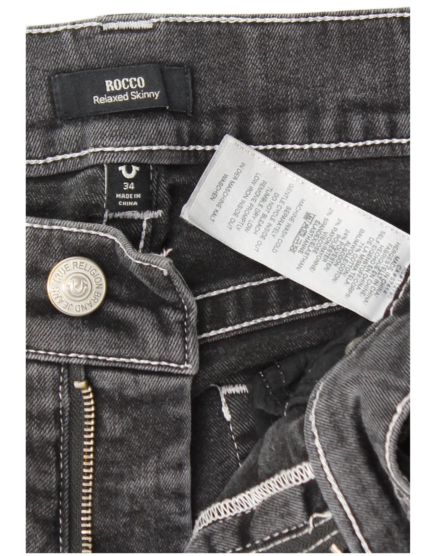TRUE RELIGION Mens Rocco Relaxed Fit Skinny Jeans W34 L31 Grey Cotton
