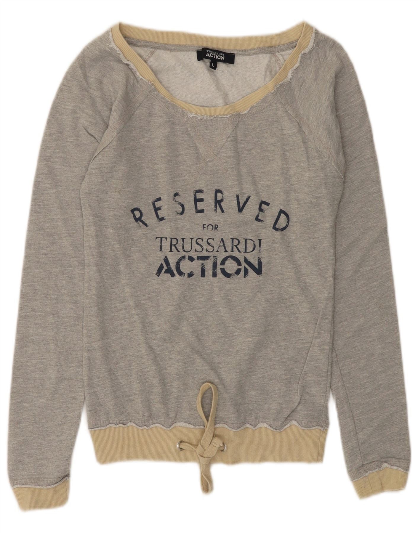 TRUSSARDI Girls Graphic Sweatshirt Jumper 9-10 Years Large Grey Cotton