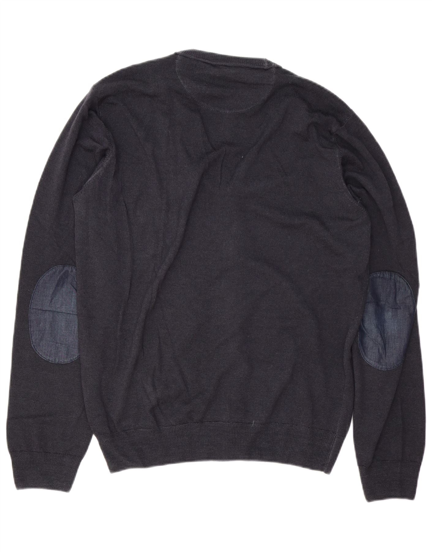 Trussardi Jeans Mens Cardigan Sweater Medium Navy Blue Wool
