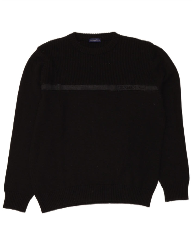TRUSSARDI JEANS Mens Crew Neck Jumper Sweater Medium Black Wool