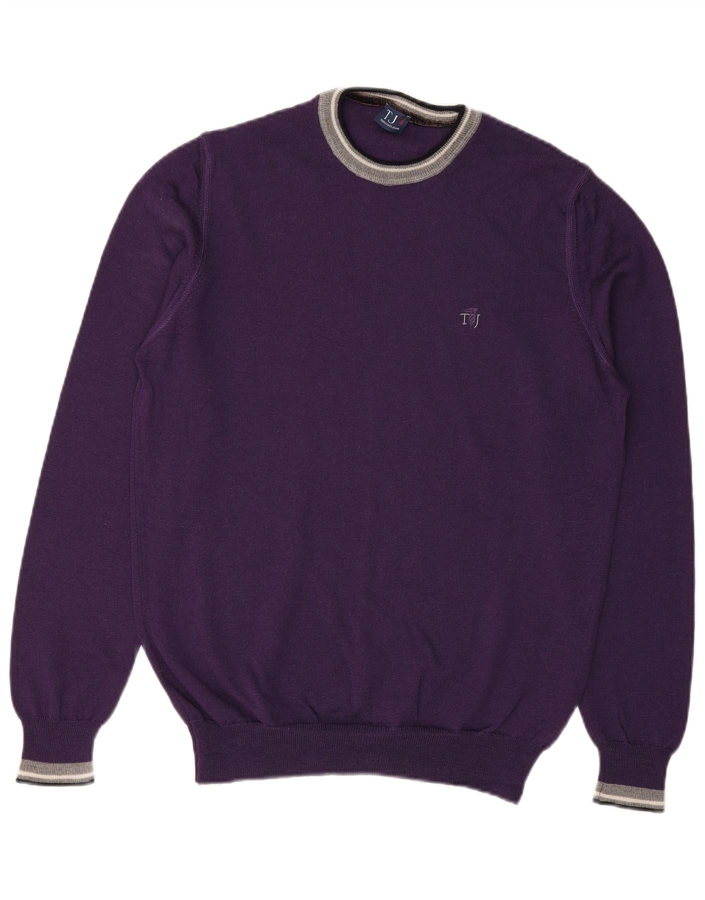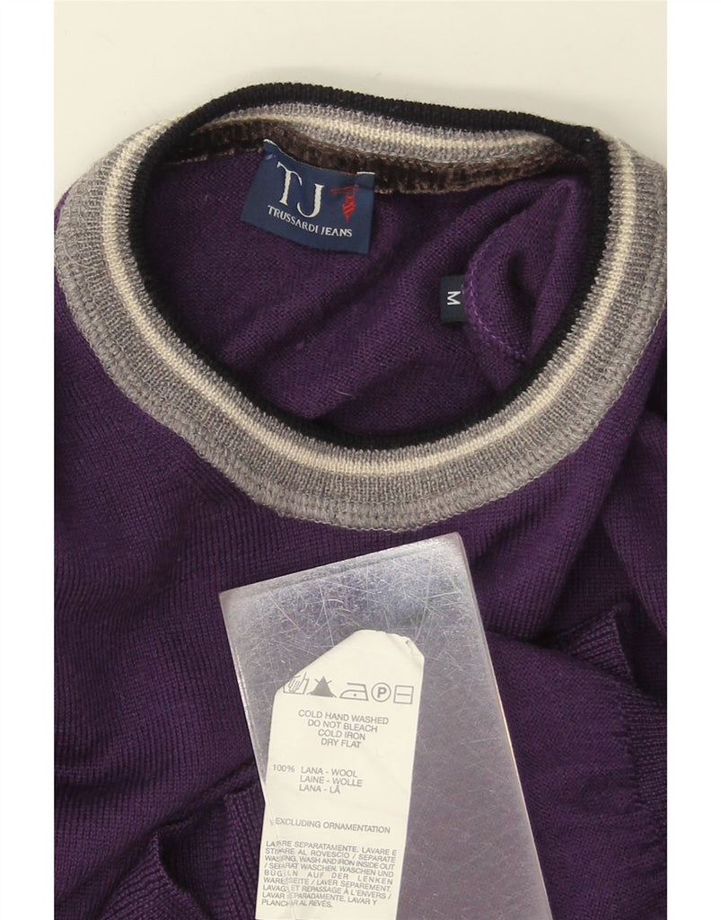 TRUSSARDI JEANS Mens Crew Neck Jumper Sweater Medium Purple Wool